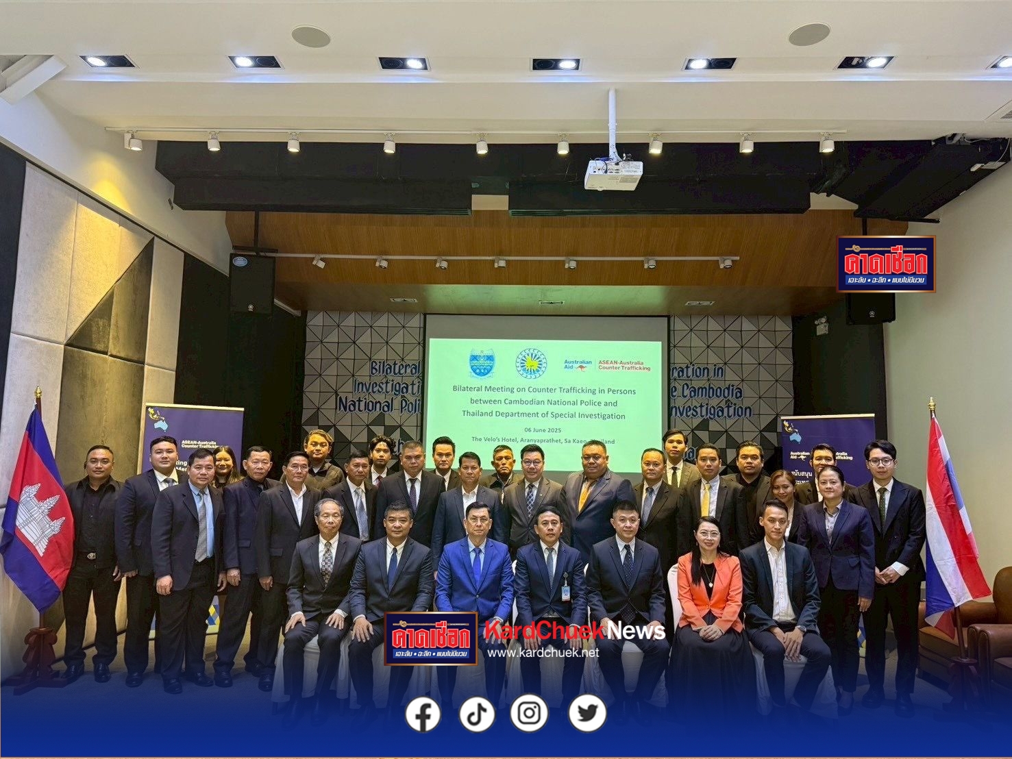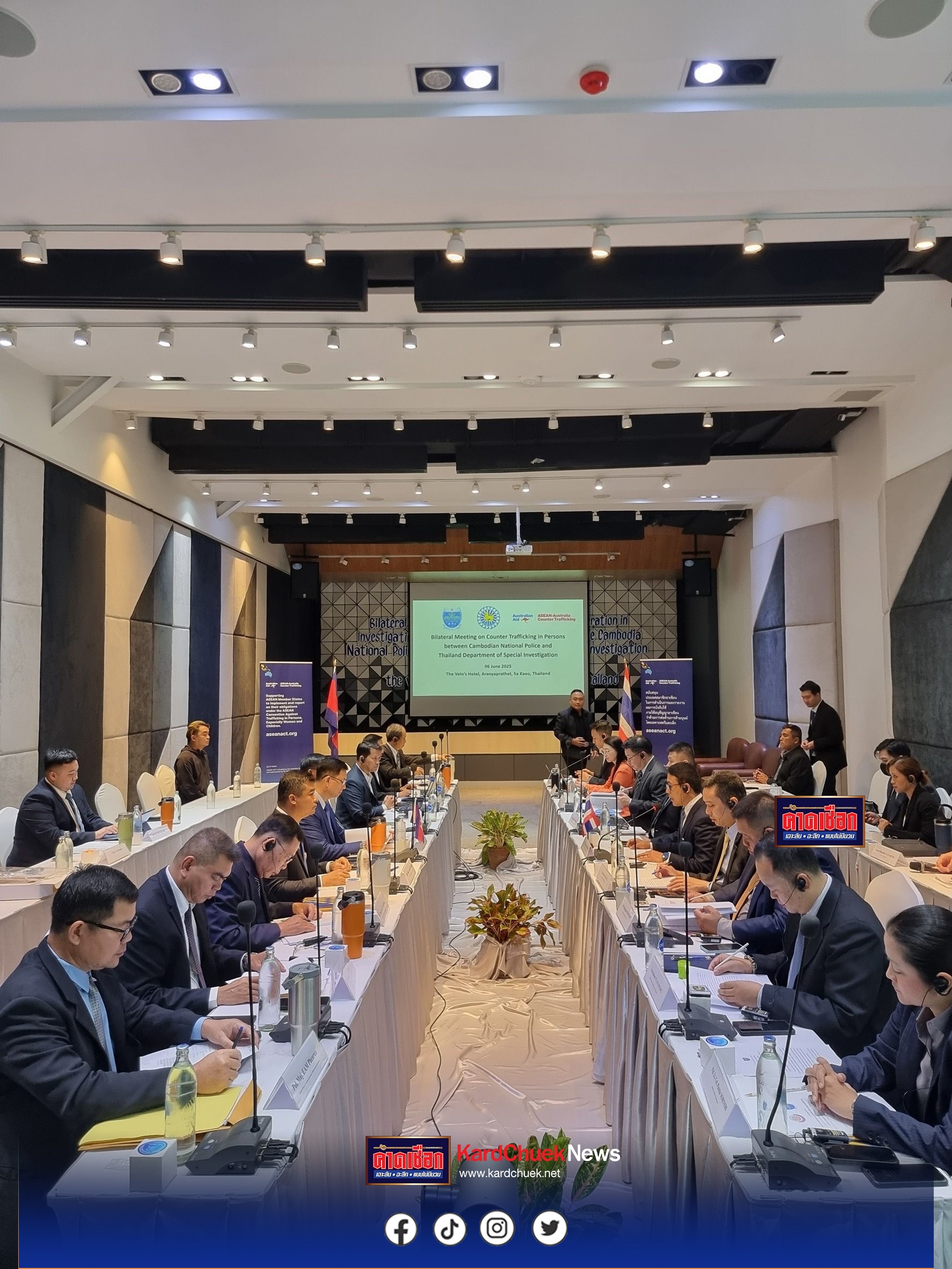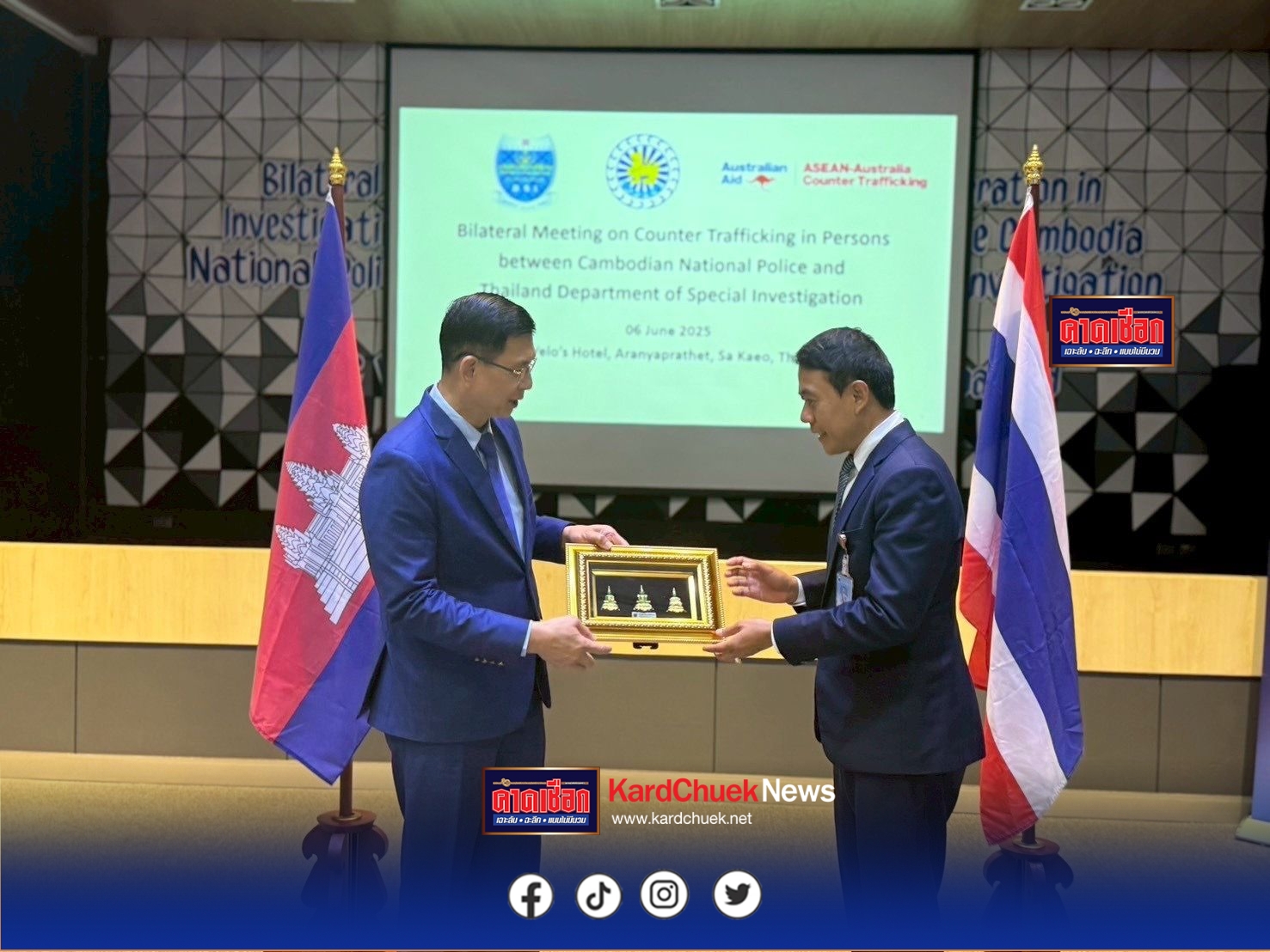 วานนี้ (วันศุกร์ที่ 6 มิถุนายน 2568 กรมสอบสวนคดีพิเศษ ร่วมกับ กรมตำรวจแห่งชาติกัมพูชา (Cambodian National Police – CNP) จัดการประชุมทวิภาคีด้านความร่วมมือระหว่างประเทศในการสืบสวนสอบสวนคดีค้ามนุษย์ ณ อำเภออรัญประเทศ จังหวัดสระแก้ว