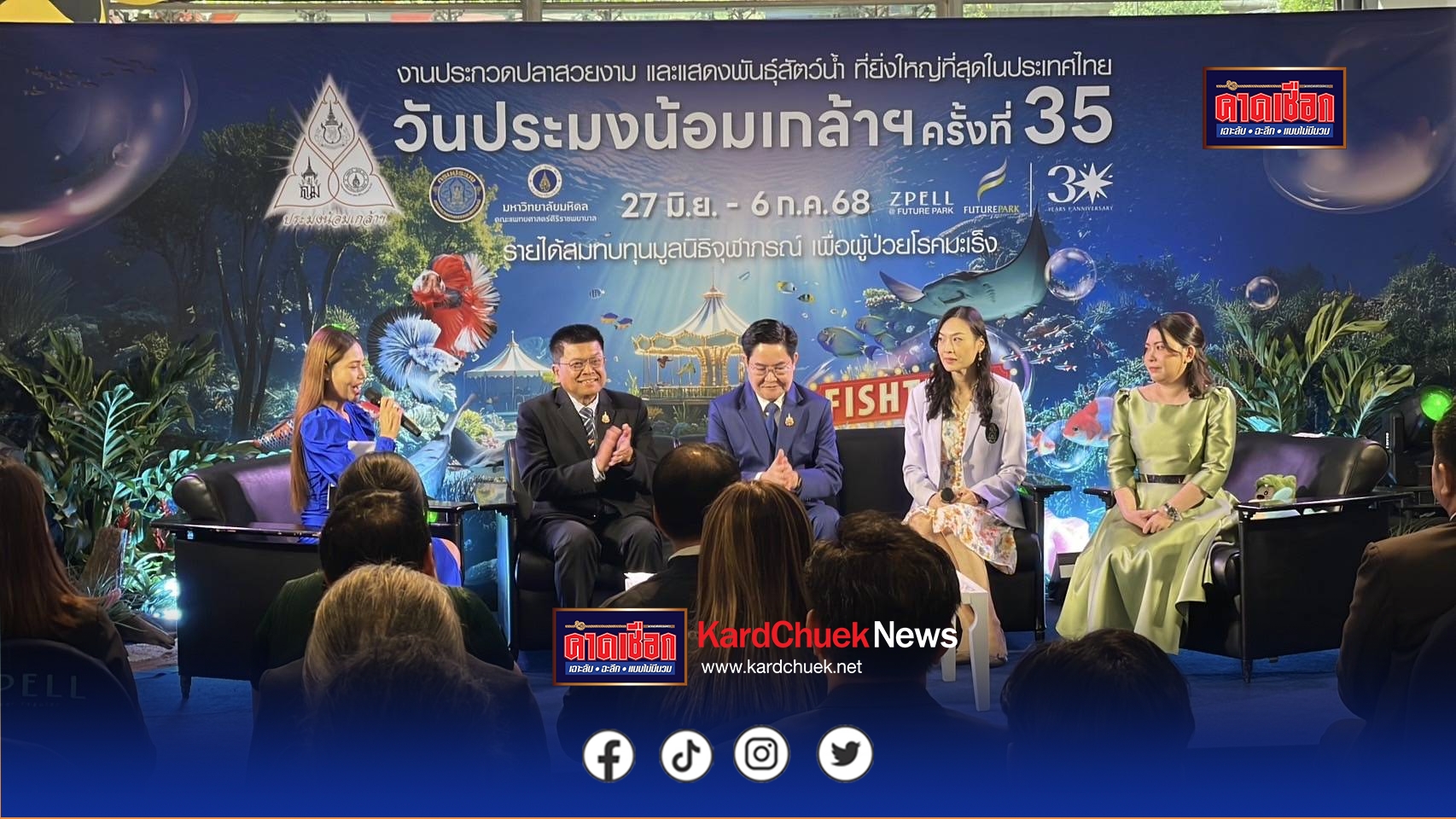 วันนี้(วันที่ 13 มิ.ย.68)ที่บริเวณลานสปอตไลท์ ชั้น G ศูนย์การค้าฟิวเจอร์พาร์คและสเปลล์ นายอัครา พรหมเผ่า รัฐมนตรีช่วยว่าการกระทรวงเกษตรและสหกรณ์ นายบัญชา สุขแก้ว อธิบดีกรมประมง ศ.พญ.นันทกร ทองแตง รองคณบดีฝ่ายกิจการพิเศษและองค์สัมพันธ์ คณะแพทยศาสตร์ศิริราชพยาบาล มหาวิทยาลัยมหิดล และคุณกัลยา กมลรัตน์ ผู้อำนวยการด้านการตลาด ศูนย์การค้าฟิวเจอร์พาร์ค แถลงข่าวถึงความร่วมมือระหว่าง กรมประมง คณะแพทยศาสตร์ศิริราชพยาบาล และศูนย์การค้าฟิวเจอร์พาร์คและสเปลล์ ตลอดจนภาครัฐและเอกชน กำหนดจัดงาน “วันประมงน้อมเกล้าฯ ครั้งที่ 35” ขึ้น ในระหว่างวันที่ 27 มิถุนายน – 6 กรกฎาคม 2568 ตั้งแต่เวลา 10.00 – 20.00 น. เนรมิตพื้นที่กว่า 7,000 ตร.ม. ทั่วบริเวณชั้น G ศูนย์การค้าฟิวเจอร์พาร์คและสเปลล์ ให้กลายเป็นโลกใต้น้ำที่เต็มไปมนต์เสน่ห์ที่น่าค้นหาตี่นตระการตากับความมหัศจรรย์ของขบวนสัตว์น้ำกว่า 3,000 ตู้ ภายใต้ธีม “FISHTIVAL (Fish Festival) เทศกาลสัตว์น้ำที่ยิ่งใหญ่ที่สุดในประเทศไทย” ทั้งความสวยงามของปลาประกวดที่ได้มาตรฐานที่สุดในประเทศไทยมากถึง 7 ชนิด 76 ประเภท ความลึกลับของปราสาทแดนอสรพิษใต้สายน้ำที่ท้าให้คุณมาพิสูจน์ ผลงานวิจัย นวัตกรรมเทคโนโลยีใหม่ๆ ที่จะพาคุณจึ้งทึ่งตลอดงาน และโชว์จับจระเข้ด้วยมือสุดหวาดเสียว รวมทั้งนิทรรศการความรู้ทางการแพทย์ “Tox Fun Fest” พิษวิทยา ฉบับเข้าใจง่าย จากคุณหมอโรงพยาบาลศิริราช ตลอดจนการจำหน่ายยาตำรับศิริราช จำหน่ายผลิตภัณฑ์อาหารและสินค้าในการเลี้ยงสัตว์น้ำสวยงามในราคาพิเศษ…บัตรเข้าชม เพียง 20 บาท