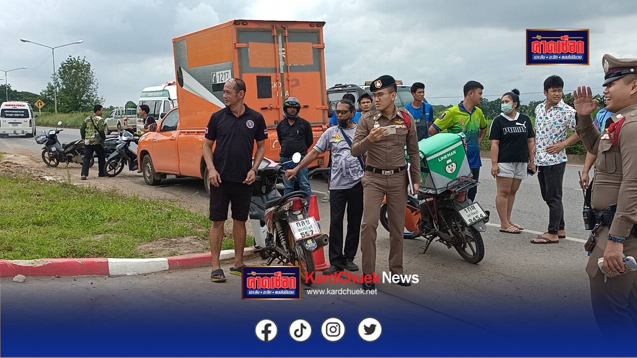 รถพ่วง22ล้อบรรทุกคอนกรีตสำเร็จ ชนรถจักรยานยนต์ทับ2สาวตายทั้งคู่เป็น นศ.วิทยาลัยการอาชีพกบินทร์บุรีระดับ ปวช.3 แผนกธุรกิจการค้า ไปเรียนด้วยกันโดยรถ จยย.วงจรปิดจับภาพ ขณะที่เลี้ยวรถปูนที่กำลังเลี้ยวเข้าปั้ม ปตท. สวนเฉลิมราช หรือ หนองปลาแขยง ริมถนนสายสุวรรณศร (กบินทร์บุรี – ประจันตคาม) หรือ สาย 33 ตำบลเมืองเก่า อำเภอกบินทร์บุรี เมื่อเวลา 12.30 น.วันนี้ 13 มิ.ย.68 ผู้สื่อข่าวรายงานจาก จ.ปราจีนบุรี ร.ต.ท ธีรภัทร พูลชาติ รองสารวัตรเวรฯ (สอบสวน) สภ.กบินทร์บุรี ได้รับแจ้งจากศูนย์วิทยุ 191 เกิดอุบัติเหตุรถพ่วง 22 ล้อบรรทุกคอนกรีตสำเร็จชนกับ รถจยย. สถานที่เกิดเหตุหน้าปั้ม ปตท.สวนเฉลิมราช หรือ หนองปลาแขยง ริมถนนสายสุวรรณศร (กบินทร์บุรี – ประจันตคาม) หรือ สาย 33 ตำบลเมืองเก่า อำเภอกบินทร์บุรี จังหวัดปราจีนบุรี ในที่เกิดเหตุมีผู้บาดเจ็บหญิง 1ราย มีอาการสาหัสรถกู้ชีพกบินทร์ดำเนินการนำส่งห้องผู้ป่วยฉุกเฉินโรงพยาบาลกบินทร์อย่างเร่งด่วนเพื่อช่วยเหลือ และ มีเสียชีวิตหญิงอีก 1 ราย อายุ 18 ปี จึงรายงานผู้บังคับบัญชาตามลำดับชั้น และ พร้อมด้วยหน่วยกู้ภัยมูลนิธิสัจจะพุทธธรรมแห่งประเทศไทย อ.กบินทร์บุรี และ ทีมแพทย์เวรฯนิติเวช รพ.กบินท์บุรี รุดไปตรวจสอบ เป็นช่วงเลยแยกเข้าปั้มน้ำมันเกือบ 10 เมตรเศษ พบรถบรรทุก 22 ล้อบรรทุกปูนผงสีขาวทะเบียน 71-1283 สมุทรสาครบริเวณล้อหัวลากรถบรรทุกพ่วงคันดังกล่าวทับรถจักรยานยนต์ ยี่ห้อฮอนด้า รุ่นเวฟ 100 สีดำแดง ทะเบียน 1 กด 8683 ปราจีนบุรีและยังทับร่างผู้บาดเจ็บจำนวน 2 ราย เป็นผู้หญิงติดคาอยู่ที่บริเวณใต้ล้อรถหน้าฝั่งซ้ายมือใกล้ที่นั่งคนขับ กู้ภัยฯได้ใช้เครื่องตัดถ่างนานกว่า 30 นาทีช่วยดึงล่างผู้ได้รับบาดเจ็บออกจากใต้ท้องรถให้การช่วยเหลือนางสาวพิชญา ชูศรี อายุ 18 ปี คนซ้อนท้าย จยย.ที่ได้รับบาดเจ็บสาหัสออกมาและรีบนำส่งห้องผู้ป่วยฉุกเฉินโรงพยาบาลกบินทร์บุรีโดยด่วนก่อนหน้านี้ และได้รีบให้การช่วยเหลืออีกคนทราบชื่อคือนางสาวจุฬารัตน์ จันทร์แก้วขาว อายุ 18 ปีเป็นคนขับรถ จยย. ที่ถูกล้อรถทับอยู่เป็นรายต่อไป เมื่อนำออกมาได้พบชีพจรอ่อนและไม่หายใจได้ช่วยเหลือทำการปั๊มหัวใจแต่นางสาวจุฬารัตน์ได้รับบาดเจ็บสาหัสมากทนพิษบาดแผลไม่ไหวได้เสียชีวิตระหว่างให้การช่วยเหลือด้านหน้าล้อรถพ่วงล้อข้างซ้ายที่ทับรถจักรยานยนต์ ยี่ห้อฮอนด้า รุ่นเวฟ 100 สีดำแดง ทะเบียน 1 กด 8683 ปราจีนบุรี นายนัด ตรีเพ็ชร คนขับรถบรรทุกพ่วงคันดังกล่าวให้การกับเจ้าหน้าที่ตำรวจว่า ขณะที่ตนขับออกจากจังหวัดสระแก้วมาตามถนนสายดังกล่าว เมื่อมาถึงบริเวณ
