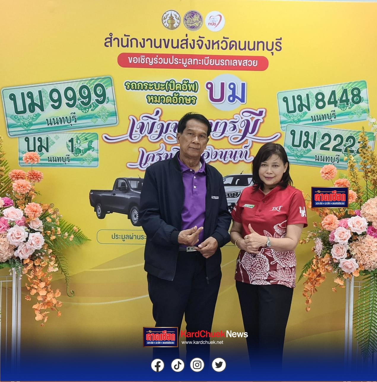 นนทบุรี-สำนักงานขนส่งจังหวัดนนทบุรีได้ปิดการประมูลทะเบียนรถปิคอัพ หมวดอักษร บม เพิ่มบุญ บารมี เศรษฐีเมืองนนท์ ประจำปี พ.ศ. 2568