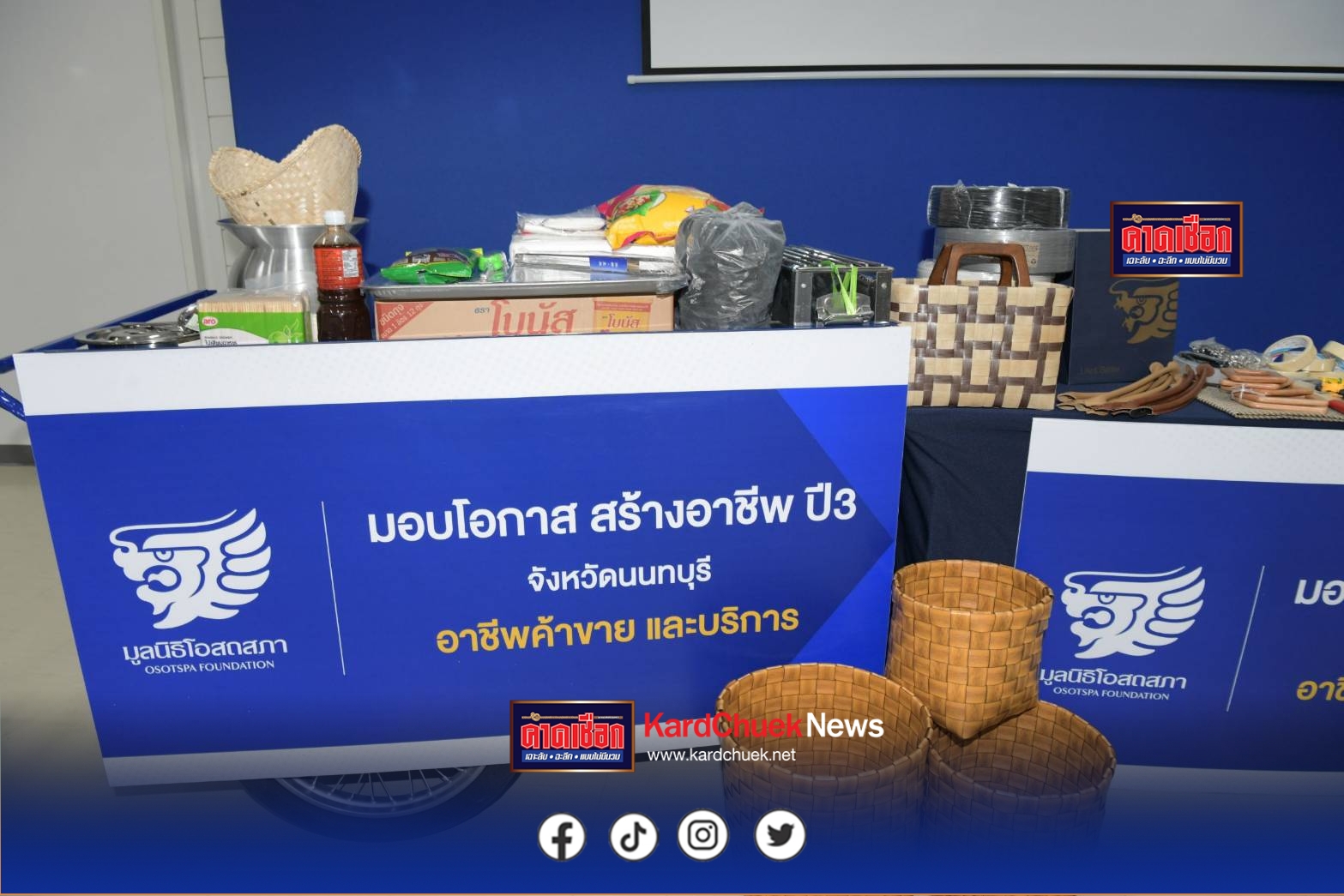 นนทบุรี-โครงการมูลนิธิโอสถสภามอบโอกาส สร้างอาชีพ ปี ๓ จังหวัดนทบุรี วันนี้ (๑๙ มิถุนายน ๒๕๖๘) เวลา 10.00 น. ณ ห้องประชุมแก้วกัลยา ชั้น 2 ศูนย์บริการคนพิการจังหวัดนทบุรี ตำบลบางตลาด อำเภอปากเกร็ด จังหวัดนนทบุรี นายเกียรติศักดิ์ ตรงศิริ ผู้ว่าราชการจังหวัดนนทบุรี เป็นประธานพิธีเปิดโครงการมูลนิธิโอสถสภา มอบโอกาสสร้างอาชีพ ปี 3 และมอบประกาศนียบัตรและอุปกรณ์ประกอบอาชีพ นอกเหนือจากที่กฎหมายกำหนด โดยมุ่งหวังให้คนพิการ มีอาชีพ มีรายได้และสามารถดูแลตนเองใต้อย่างภาคภูมีใจ ปัจจุบันมี ๔ จังหวัด ที่ได้ร่วมกันขับเคลื่อนการทำงาน ได้แก่ จังหวัดนนทบุรี จังหวัดพระนครศรีอยุธยา จังหวัดชัยนาท และจังหวัดอุทัยธานี โดยได้มีการประสานความร่วมมือ MOU กับกระทรวงการพัฒนาสังคมและความมันคงของมนุษย์เมื่อวันที่ ๒๘ พฤษภาคม ๒๕๖๘ ซึ่งในปีนี้มีคนพิการในจังหวัดนนทบุรีได้รับอาชีพทั้งสิ้นสิ้น 32 คน และในปีแรกมีคนพิการที่ได้รับอาชีพ ๔๔ คน รวมคนพิการในพื้นที่ที่ได้รับอาชีพจำนวนทั้งสิ้น ๗๖ คน โดpมูลนิธิโอสถสภาจะจัดฝึกอบรม และส่งมอบอาชีพ ให้กับคนพิการในวันที่ ๑๘ – ๑๙ มิถุนายน ๒๕๖๘ ณ ศูนย์บริการคนพิการจังหวัดนนทบุรี ซึ่งคนพิการสามารถนำความรู้ที่ได้รับการอบรมในครั้งนี้ มีนางสาวดรุณี มนัสวานิช พัฒนาสังคมและความมั่นคงของมนุษย์จังหวัดนนทบุรี คุณสุธิดา เสียมหาญ กรรมการมูลนิธิโอสถสภาและผู้อำนวยการสื่อสารองค์กรและกิจกรรมเพื่อสังคม หัวหน้าหน่วยงานในสังกัดกระทรวงการพัฒนาสังคมและความมั่นคงของมนุษย์จังหวัดนทบุรี (One Home) คนพิการ เข้าร่วมพิธี ประยงค์ วิลัย /ภาพข่าว