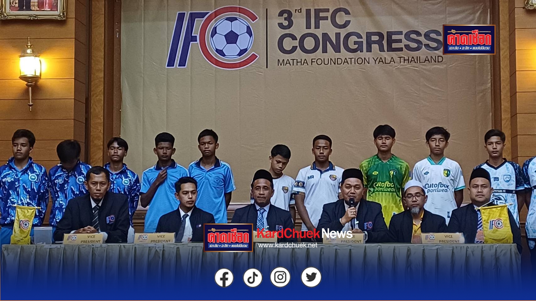 ยะลา – สมาพันธ์กีฬาฟุตบอลโรงเรียนเอกชนสอนศาสนาภาคใต้ แถลงข่าว จัดแข่งขันฟุตบอล IFC CHAMPIAN LEAGUE 2025 (U-16) วันนี้ 1 กรกฎาคม 2568 ที่ มูลนิธิมะทา เขตเทศบาลนครยะลา อ.เมืองยะลา จ.ยะลา ดร.มูฮัมหมัดอัสมี อาบูบากา ประธานสมาพันธ์กีฬาฟุตบอลโรงเรียนเอกชนสอนศาสนาภาคใต้ หรือ IFC ได้นำคณะ ร่วมแถลงข่าวการจัดแข่งขันฟุตบอล IFC CHAMPIAN LEAGUE 2025 (U-16) ซึ่งจะเริ่มขึ้นในวันที่ 16 มิถุนายน 2568 ใช้สนามการแข่งขัน ในพื้นที่ ยะลา,ปัตตานี, นราธิวาส และสงขลา เป็นแบบระบบเหย้า-เยือน โดยมี ผู้บริหาร และครูผู้ฝึกสอนโรงเรียนเอกชนสอนศาสนา สมาชิก รวมทั้ง ตัวแทนนักกีฬา จาก 5 จังหวัดชายแดนภาคใต้ ที่ชนะเลิศเป็นตัวแทนแต่ละจังหวัด จังหวัดละ 2 ทีม รวม 10 ทีม เข้าร่วมรับฟังการแถลงข่าวในครั้งนี้ ดร.มูฮัมหมัดอัสมี อาบูบากา ประธาน IFC เปิดเผยว่า ปีนี้ การแข่งขันฟุตบอลรุ่นอายุ 16 ปี เริ่มต้นมาจากการแข่งขันรุ่นอายุ 15 ปี ในเทอม 2 ของปีที่แล้ว โดยมีการคัดเลือกตัวแทนจังหวัด 5 จังหวัด จังหวัดละ 2 ทีม มาแข่งขันต่อในเทอม 1 ของปีนี้ สำหรับวัตถุประสงค์หลักของการจัดการแข่งขันครั้งนี้ เพื่อให้ทีมฟุตบอลชั้นนำในพื้นที่จังหวัดชายแดนใต้ได้มีโอกาสสัมผัสประสบการณ์การแข่งขันที่มีมาตรฐานสูงขึ้น ซึ่งจะช่วยให้นักฟุตบอลได้พัฒนาศักยภาพของตนเอง และต่อยอดไปสู่การเล่นในรุ่นอายุ 18 ปี รวมถึง ก้าวไปสู่การเป็นนักฟุตบอลอาชีพในอนาคต จากโครงการนี้ เราได้เห็นนักฟุตบอลหลายคนเติบโตและก้าวสู่การเป็นนักฟุตบอลอาชีพ หลังจากจบการศึกษาจากโรงเรียน ตลอดระยะเวลา 3 ปีที่เราก่อตั้งสมาพันธ์ IFC เรามีนักเตะอาชีพหลายคนที่ได้เล่นให้กับสโมสรต่างๆ โดยเฉพาะอย่างยิ่งสโมสร FC ยะลา ที่ให้การสนับสนุนนักฟุตบอลเหล่านี้ ซึ่งนักฟุตบอลที่ประสบความสำเร็จ เช่น อนาฟี: ปัจจุบันเล่นอยู่ในระดับไทยลีก 1 กับสโมสร พีที ประจวบ อิมรอน นักเตะเยาวชนทีมชาตินักเรียนไทย รุ่นอายุ 18 ปี และปัจจุบันเล่นอาชีพอยู่กับ FC ยะลา ซูเฟียน ดอเลาะ นักเตะผลผลิตของ FC ที่ได้รับการยอมรับในฐานะนักเตะ ID Talent ของเยาวชนทีมชาติไทย นอกจากนี้ เรายังมีศูนย์ฝึกฟุตบอลตามโรงเรียนต่างๆ และทางสมาคมยังได้ร่วมมือกับเราในการจัดตั้งสโมสรชั้นนำ เพื่อผลิตนักฟุตบอลอาชีพและนักฟุตบอลทีมชาติในอนาคต… ดร.มูฮัมหมัดอัสมีฯ กล่าวในช่วงท้าย ทั้งนี้ นอกจากการแถลงข่าวจัดแข่งขันฟุตบอล IFC CHAMPIAN LEAGUE 2025 (U-16) แล้ว ยังมีการจัดประชุมใหญ่สามัญประจำปี 2568 IFC CONGRESS 2025 เพื่อร่วมกำหนดแนวทางการพัฒนา และเลือกตั้งประธาน IFC อีกด้วย