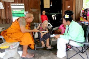 โดยหลวงพี่น้ำฝนและทัพสายบุญวัดไผ่ล้อมฯ ได้ลงพื้นที่เพื่อไปพบกับญาติโยมและเข้าเยี่ยมเยียน ให้กำลังใจกับผู้สูงวัยถึงเตียงในบ้านพักซึ่งพบว่าส่วนใหญ่ที่ได้พบจะเป็นครอบครัวที่ต้องเร่งหารายได้และแบ่งเวลาในการดูแลผู้สูงวัยในบ้าน ซึ่งมีค่าใช้จ่ายสูงรวมถึงยังมีโรคประจำตัวและเป็นกลุ่มเปราะบางที่ไม่สามารถดูแลตัวเองได้ ซึ่งในกลุ่มที่มีปัญหาในการดำเนินชีพ ดังกล่าวนอกจากจะได้รับการประสานงานจากหน่วยงานภาครัฐแล้วแต่ก็ยังไม่เพียงพอจึงจำเป็นต้องมีการระดมกำลังจากกลุ่มผู้ใจบุญในการเข้าช่วยเหลือเพื่อเป็นการประทังความเดือดร้อนอีกทางหนึ่ง