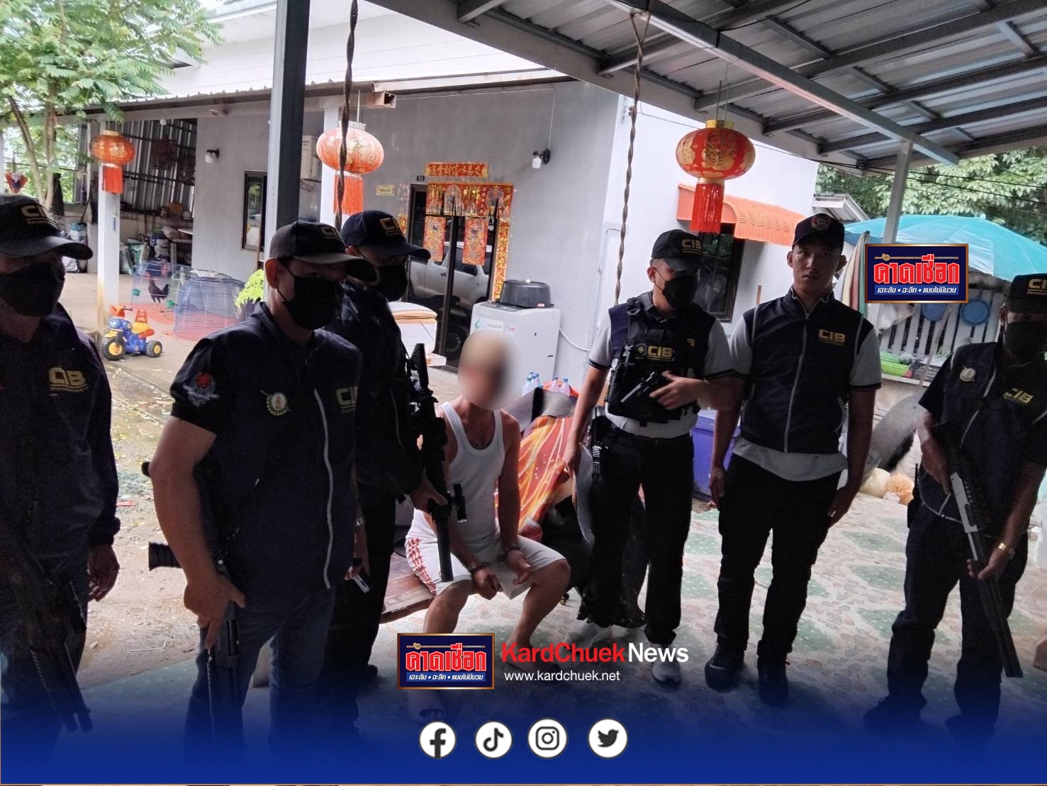 จากการสืบสวนติดตามตัวผู้ต้องหาทำให้ทราบว่า ผู้ต้องหาได้หลบหนีมาอาศัยที่บ้านพักในพื้นที่ หมู่ที่ 10 ตำบลบ้านแซว อำเภอเชียงแสน จังหวัดเชียงราย เจ้าหน้าที่จึงวางกำลังสังเกตการณ์โดยรอบบ้านหลังดังกล่าว จนพบเห็นชายซึ่งมีลักษณะตำหนิรูปพรรณตรงตามข้อมูลหมายจับฯ จึงได้แสดงตนเป็นเจ้าหน้าที่ตำรวจ