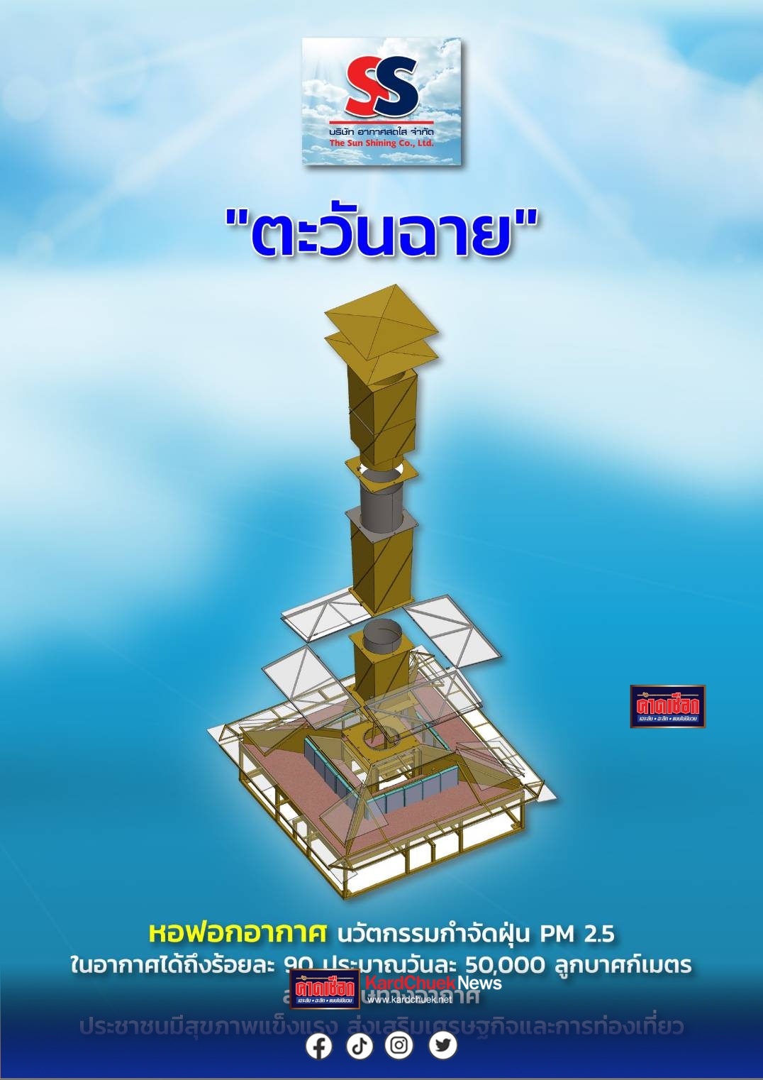 ทาง บจก.อากาศสดใส โดยวิศวกรผู้ออกแบบและนักวิจัย มีข้อมูลงานวิจัยและทดสอบจากต่างประเทศยืนยันว่า หอฟอกอากาศ “ตะวันฉาย” นี้ สามารถขจัดฝุ่น pm2.5 ออกจากอากาศที่เข้ามาบำบัดได้อย่างคุ้มค่า