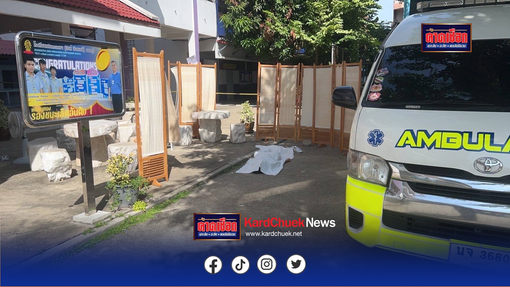 เมื่อเวลา 08.10 น. วันที่ 14 กรกฎาคม 2568 พ.ต.ท.พีระพรรณ์ ทองพิทักษ์ สว.(สอบสวน)สภ.บางกรวย จ.นนทบุรี ได้รับแจ้งเหตุมีนักเรียนหญิงตกจากอาคารเรียนชั้น 7 ภายในโรงเรียนบดินทร์เดชาสิงห์ สิงหเสนี ต.วัดชลอ อ.บางกรวย จ.นนทบุรี จึงนำกำลังเจ้าหน้าที่สายตรวจสภ.บางกรวย พร้อมเจ้สาหน้าที่กู้ชีพโรงพยาบาลบางกรวย และทีมแพทย์จากสถาบันนิติวิทยาศาสตร์เข้าตรวจสอบ