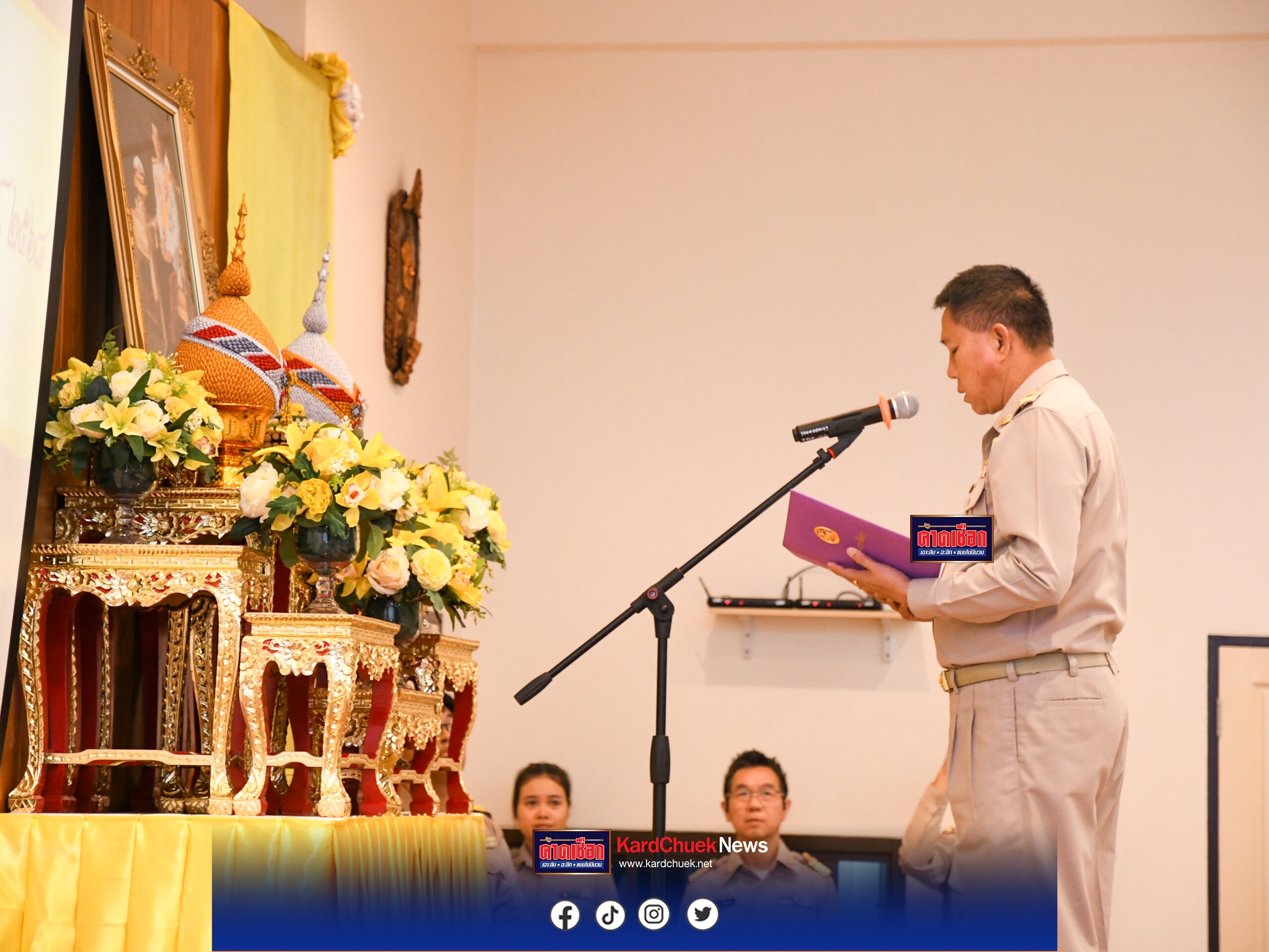 วันจันทร์ที่ 14 กรกฎาคม 2568 เวลา 10.19 น. ณ ศูนย์ศึกษาและพัฒนาชุมชนชลบุรี อำเภอเมืองชลบุรี จังหวัดชลบุรี นายอรรษิษฐ์ สัมพันธรัตน์ ปลัดกระทรวงมหาดไทย มอบหมายให้ นายธวัชชัย ศรีทอง ผู้ว่าราชการจังหวัดชลบุรี เป็นประธานเปิดโครงการฝึกอบรมวิทยากรเพื่อทำหน้าที่ถ่ายทอดความรู้เกี่ยวกับประวัติศาสตร์ชาติไทย ประจำปี 2568 รุ่นที่ 2 โดยมี นายพงศ์ธสิษฐ์ ปิจนันท์ รองผู้ว่าราชการจังหวัดชลบุรี นางมนต์พัทธนันท์ ปิจนันท์ รองนายกเหล่ากาชาดจังหวัดชลบุรีและรองประธานแม่บ้านมหาดไทยจังหวัดชลบุรี น.ส.รัตนา สรภูมิ ผู้อำนวยการสถาบันดำรงราชานุภาพ สำนักงานปลัดกระทรวงมหาดไทย นางรัชนี โพธิสัตยา ผู้ตรวจราชการกรมปฏิบัติหน้าที่ผู้อำนวยการ ศูนย์ศึกษาและพัฒนาชุมชนชลบุรี หัวหน้าส่วนราชการ นายอำเภอ เจ้าหน้าที่ที่เกี่ยวข้อง และผู้เข้ารับการฝึกอบรมฯ ร่วมพิธีฯ