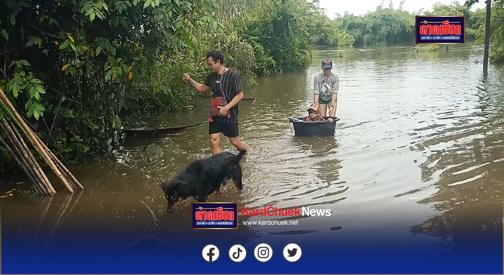 วันที่ 15 กรกฎาคม 2568 ผู้สื่อข่าว จ.สกลนคร เดินทางไปที่บ้านกอนสัมพันธ์ ม.9 ต.หนองลาด อ.เมือง จ.สกลนคร หลังทราบว่ามีประชาชนกำลังประสบความเดือดร้อนจากน้ำท่วมขัง เนื่องจากปีนี้น้ำมาเร็วและท่วมนาน เมื่อไปถึงท้ายหมู่บ้านซึ่งเป็นที่ราบลุ่มพบว่าน้ำท่วมขังเป็นบริเวณกว้างกินพื้นที่ประมาณ 200 ไร่ ชาวบ้านที่อาศัยในบริเวณดังกล่าว 4 ครอบครัว 20 คน กำลังเดือดร้อนอย่างหนักเพราะขาดแคลนอาหาร น้ำดื่มและยารักษาโรค นางสาวลินดา ไกยะพาย อายุ 38 ปี ชาวบ้าน บ.ดอนสัมพันธ์ บอกว่า พื้นที่ถูกน้ำท่วมเป็นถนรอยู่ริมลำน้ำอูน ระดับน้ำแค่สะเอวบางช่วงก็ประมาณครึ่งเสาไฟฟ้า ระยะทางที่จะเข้าไปถึงที่นาประมาณ 1,200 เมตร จะสัญจรเข้าไปมาไม่ได้ พวกตนจะออกไปซื้ออาหารก็ต้องบุยน้ำออกมาโดยให้ลูกนั่งมาในกาละมัง ซึ่งลำบากมาก ยังกีที่ชุดกู้ภัยคำหอมนำเรือมาให้ 1 ลำ แต่ก็ช่วยอะไรไม่ได้มากเพราะไม่มีเครื่องและเรือทวนน้ำลำบากต่อการพาย
