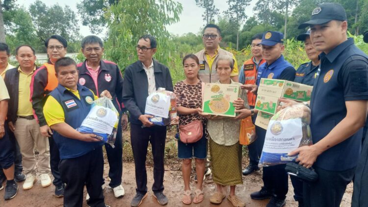 วันที่ 16 ก.ค.2568 ที่บ้านดอนสัมพันธ์ ต.หนองลาด อ.เมือง จ.สกลนคร นายอนณ คำทองแก้ว ปลัดอำเภออาวุโส อ.เมืองสกลนคร พร้อมด้วย นายอลงกรณ์ รัตนโกเสศ นายก ทต.หนองลาด จนท.จาก สนง.พัฒนาสังคมฯ จนท.ปภ จนท.ตำรวจ กำนัน ผญบ.,อสม.และ ชรบ.ได้รับมอบจาก น.ส.จอราภรณ์ เบิกบานดี นอภ.เมืองสกลนคร ให้นำเครื่องอุปโภคบริโภค ข้าวสาร อาหารแห้ง น้ำดื่ม และเรือท้อแบน ไปมอบให้ผู้ประสบอุทกภัย จำนวน 4 ครอบครัว รวม 22 คน ซึ่งอาศัยอยู่ในที่นาติดลำน้ำอูน เมื่อมีฝนตกลงมาต่อเนื่องทำให้น้ำมนลำน้ำล้นตลิ่งไหลบ่าเข้าท่วมที่พักอาศัย นาข้าวหลายร้อยไร่ถูกน้ำท่วมนานเกือบ 2 เดือนได้รับความเสียหาย น้ำยังไหลบ่าเข้าท่วมถนนที่จะเชื่อมต่อไปหลายหมู่บ้านถูกน้ำท่วมเป็นระยะทางเกือบ 2 กม.ตัดขาดจากโลกภายนอกขาดแคลนอาหารและนิำดื่ม ถนนบางช่วงน้ำท่วมหัว ซึ่ง นายก ทต.หนองลาดได้เห็นสภาพความลำบากนี้ จะให้ จนท.กองช่าง ออกมาสำรวจเพื่อหางบประมาณมาก่อสร้างแก้ไขปัญหาในระยะยาว นายอนณ คำทองแก้ว ปลัดอำเภออาวุโสฯ กล่าวว่า ท่านนายอำเภอเมืองสกลนคร ได้แสดงความเป็นห่วงในเรื่องความปลอดภัยของเด็กนุกเรียนซึ่งไม่น่าห่วงเพราะได่อพยพออกมาหมดแล้ว ส่วนเรื่องการขาดแคลนอาหารก็เข่นกัน เพราะได้นำมามอบให้เพื่อบรรเทาทุกข์แล้ว รอแต่ว่าเมื่อไรน้ำจะลดคาดว่าไม่เกิน 1 เดือนจะเข้าสู่ภาวะปกติ