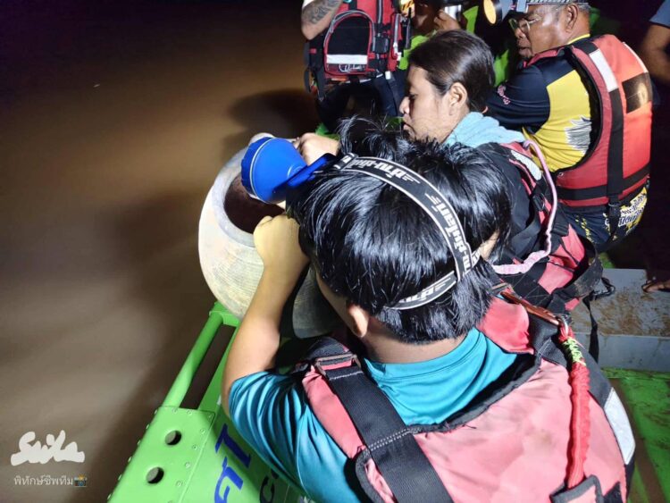 ต่อมา เจ้าหน้าที่กู้ภัยมูลนิธิสัจจะพุทธธรรม แห่งประเทศไทย (อ.กบินทร์บุรี) พร้อมทีมค้นหาใต้น้ำอุปกรณ์ส่องสว่าง และเครื่องซาวเดอร์ค้นหาใต้น้ำร่วมกับชาวบ้านกว่า 50 คน ช่วยกันค้นหาตัวบุคคลสูญหายในที่เกิดเหตุตลอดทั้งคืนแต่ไม่พบ