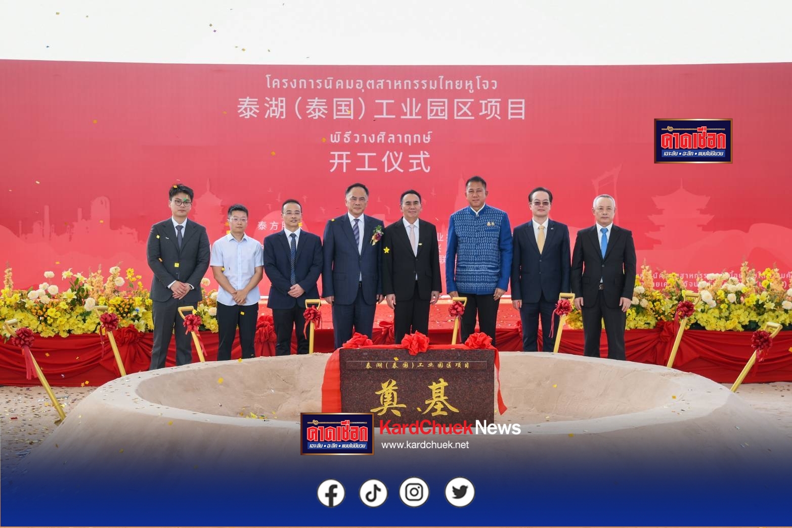 ทั้งนี้ ภายในพิธีมีการลงนามบันทึกความร่วมมือ การนำเสนอแผนการลงทุน และพิธีตักดินวางศิลาฤกษ์อย่างเป็นทางการ ณ บริเวณพื้นที่ของบริษัท ลองลัด (LONG LUCK CO., LTD.) ซึ่งเป็นจุดเริ่มต้นของการก่อสร้างนิคมอุตสาหกรรมที่คาดว่าจะเป็นฟันเฟืองสำคัญของอุตสาหกรรมไทยในอนาคต