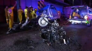 เปิดภาพจากกล้องวงจรปิดจับภาพนาทีเกิดอุบัติเหตุรถกระบะแต่งซิ่งขับขี่มาด้วยความเร็วก่อนจะเสียหลักหมุนด้วยความเร็วทำให้รถไปฟาดกับเสาไฟฟ้าซึ่งเป็นด้านคนขับกระแทกด้วยความแรงทำให้รถพังยับเยินเครื่องยนต์ขาดกระเด็นหลุดออกจากตัวรถส่วนคนขับเสียชีวิตคาซากรถ
