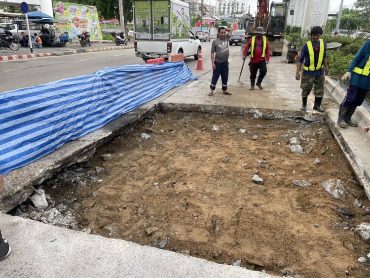 จากการสอบถาม พ.ต.ท.ฐาปนพงษ์ พึ่งมี สว.จร.สภ.ปากเกร็ด กล่าวว่า จากที่มีการตรวจสอบปรากฏว่าถนนทรุดตัวลงเป็นแอ่งกระทะ ข้างล่างลึกประมาณ 3-5 เมตร ที่บริเวณหน้าบิ๊กซี เอ็กซ์ตร้า ก่อนถึงห้าแยกปากเกร็ด คาดว่าจะต้องใช้เวลาซ่อมถ้าไม่ปิดถนนเลนนี้จะทำให้ผู้ใช้รถใช้ถนนไม่ปลอดภัย เพราะใต้ล่างเป็นโพรง จะต้องให้เจ้าหน้าที่ซ่อมสกัดเทพื้นผิวให้เต็ม จึงต้องเลี่ยงให้ประชาชนงดใช้ถนนเลนขวากว่าจะดำเนินเสร็จ และต้องรอปูนเสร็จตัวอาจจะใช้เวลาถึงช่วงหัวค่ำในวันนี้ อยากให้ประชาชนที่ใช้เส้นทางถนนแจ้งวัฒนะ ขอความกรุณาหลีกเลี่ยงเส้นทาง ถ้าไม่มีความจำเป็นจะต้องขึ้นสะพานพระราม 4 ให้เลี้ยวซ้ายไปถนนเลี่ยงเมืองไปสามัคคี หรืออีกเส้นทางคือไปทางเมืองทอง เข้าถนนบรอนด์สตรีท เพราะตอนนี้มีความจำเป็นจริงๆ ห่วงเรื่องความปลอดภัยของประชาชนที่ใช้เส้นทาง ตอนนี้รถที่วิ่งผ่านเป็นรถใหญ่ทำให้ถนนสั่นสะเทือน จึงเร่งให้ทางเจ้าหน้าที่เข้ามาซ่อมแซม และต้องปิด 1 เลนในทันที เพราะมีโอกาสที่หลุมจะใหญ่ขึ้นไปเยอะ จะต้องซ่อมจริงจังไม่ใช่ปิดแค่ชั่วคราวจะไม่ปลอดภัย