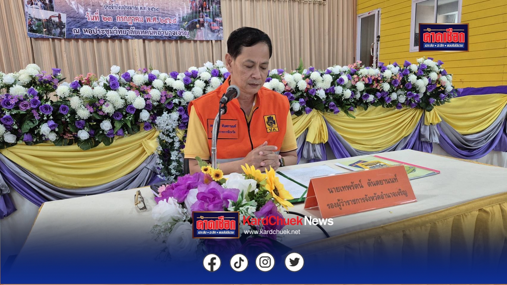 วันนี้ 23 กรกฎาคม 2568เวลา 13.30 น. ณ หอประชุมวิทยาลัยเทคนิคอำนาจเจริญ อำเภอเมืองอำนาจเจริญ จังหวัดอำนาจเจริญ นายเทพรัตน์ ตันตยานนท์ รองผู้ว่าราชการจังหวัดอำนาจเจริญ เป็นประธานในพิธีเปิดการฝึกอบรมและการฝึกศูนย์บัญชาการเหตุการณ์จังหวัดอำนาจเจริญ กรณีเหตุอุทกภัย ประจำปีงบประมาณ 2568 โดยมี นางขนิษฐา แห่งธรรม หัวหน้าสำนักงานและป้องกันและบรรเทาสาธารณภัยจังหวัดอำนาจเจริญ หน่วยงานระดับจังหวัดตามโครงสร้างศูนย์บัญชาการเหตุการณ์อุทกภัยจังหวัด จำนวน 34 หน่วยงาน และหน่วยงานระดับอำเภอ ผู้แทนนายอำเภอ 7 อำเภอ และองค์กรปกครองส่วนท้องถิ่น จำนวน 2 แห่ง ตลอดจนองค์กรการกุศล มูลนิธิและหน่วยงานเอกชนที่เกี่ยวข้อง รวม 60 คน เข้าร่วมการฝึกอบรมในครั้งนี้