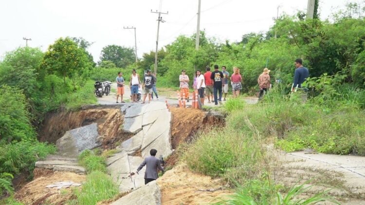 นครปฐม250768ศูนย์ดำรงค์ธรรมจังหวัดนครปฐม ประสานหลายหน่วยงานแก้ปัญหาถนนทรุดยาว 800 เมตรชาวบ้านเดือดร้อน 200 ครัวเรือน