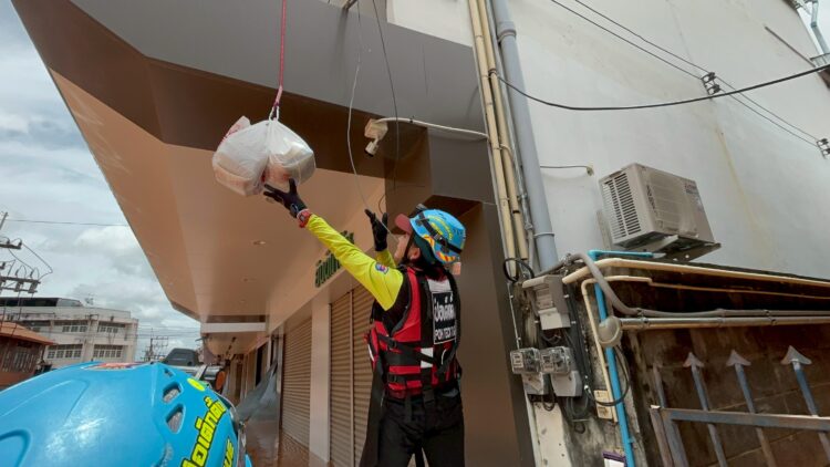 ภัย ประกอบอาหารปรุงสุก จำนวน 1500 กล่อง ถุงยังชีพ 500 ชุด น้ำดื่ม 300 แพ๊ค เสื้อชูชีพ 50 ตัว และอาหารสัตว์สุนัขและแมว พร้อมยาเวชภัณฑ์