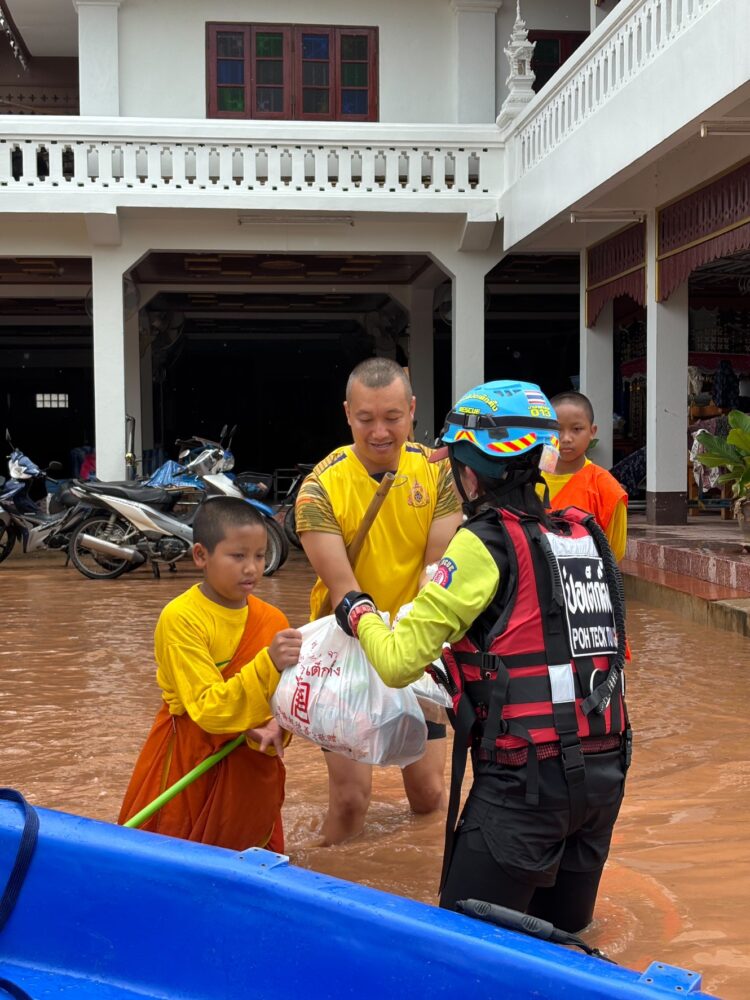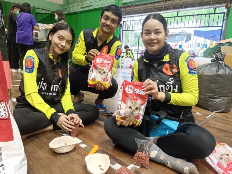 ภัย ประกอบอาหารปรุงสุก จำนวน 1500 กล่อง ถุงยังชีพ 500 ชุด น้ำดื่ม 300 แพ๊ค เสื้อชูชีพ 50 ตัว และอาหารสัตว์สุนัขและแมว พร้อมยาเวชภัณฑ์