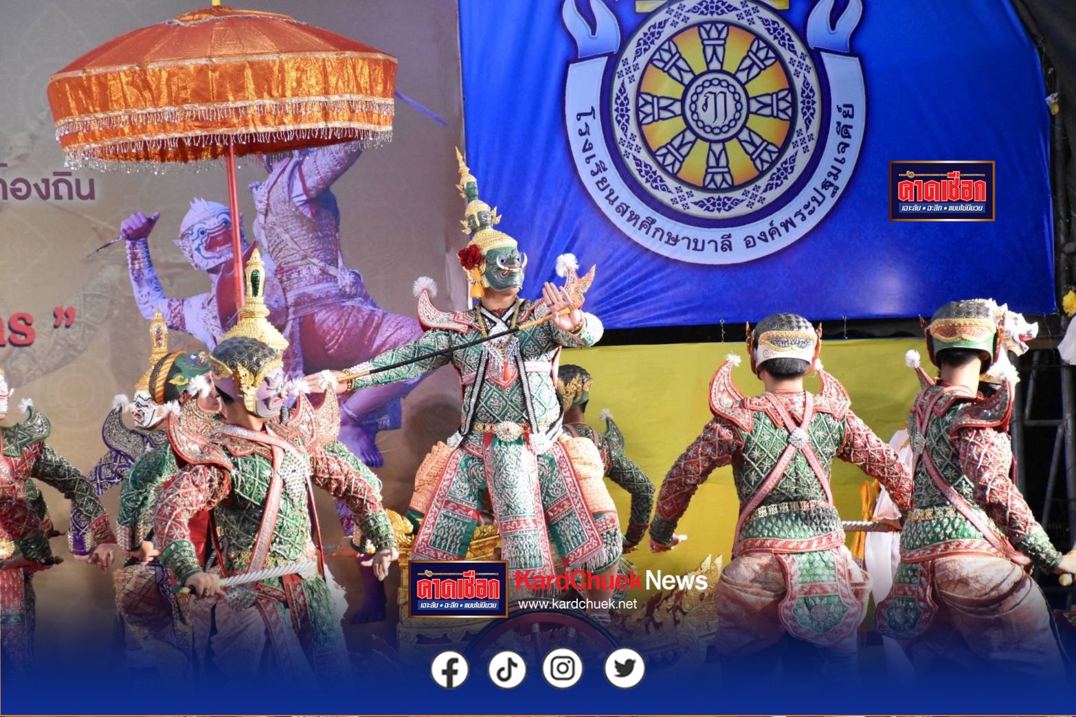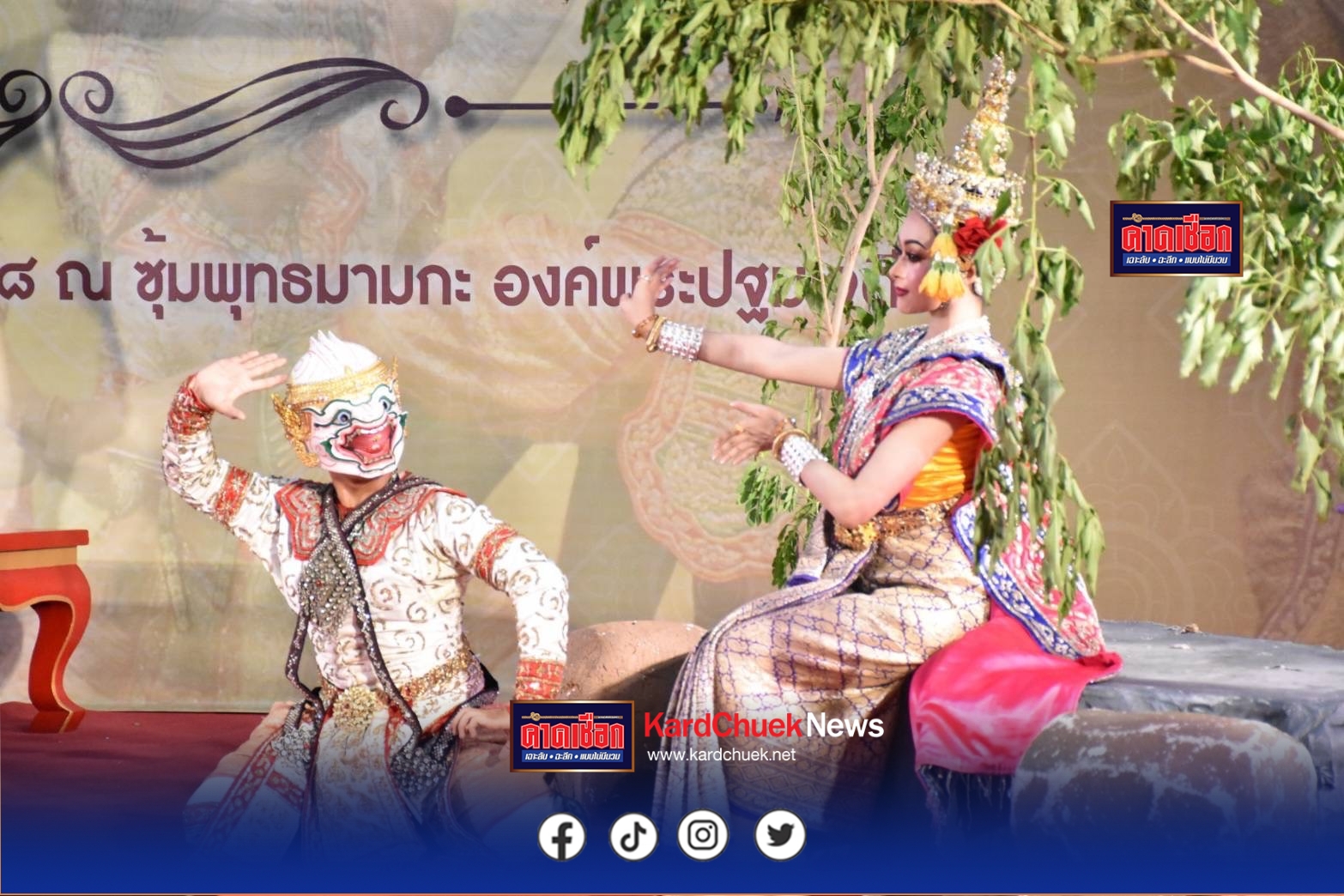 วธ.นครปฐมอนุรักษ์ฟื้นฟูขนบธรรมเนียมประเพณีวัฒนธรรมท้องถิ่นและมรดกภูมิปัญญา แสดงโขน เรื่องรามเกียรติ์ ชุด วายุบุตรวุฒิไกร เมื่อวันที่ 28 กรกฎาคม 2568 เวลา 19.30 น. ผู้สื่อข่าวรายงานว่า ที่ซุ้มพุทธมามกะ องค์พระปฐมเจดีย์ จังหวัดนครปฐม โดยสำนักงานวัฒนธรรมจังหวัดนครปฐม ร่วมกับสถาบันบัณฑิตพัฒนศิลป์ และวัดพระปฐมเจดีย์ ราชวรมหาวิหาร จัดโครงการเทิดทูนสถาบันพระมหากษัตริย์ และพระบรมวงศานุวงศ์ ประจำปีงบประมาณ พ.ศ. 2568 และ โครงการส่งเสริมสนับสนุนการอนุรักษ์ฟื้นฟูขนบธรรมเนียมประเพณีวัฒนธรรมท้องถิ่นและมรดกภูมิปัญญา ประจำปีงบประมาณ พ.ศ. 2568 โดยมี นางสาวอโรชา นันทมนตรี ผู้ว่าราชจังหวัดนครปฐม พร้อมด้วย นายรณภพ เวียงสิมมา นายยงยุทธ สวนทอง นายปรีชา ดิลกพรเมธี นายอรรถวุฒิ พึ่งเนียม รองผู้ว่าราชการจังหวัดนครปฐม นางฐิติรัตน์ เรืองสังข์ วัฒนธรรมจังหวัดนครปฐม หัวหน้าส่วนราชการจังหวัดนครปฐม นางนภาพรรณ จิตต์กระจ่าง ผู้อำนวยการกลุ่มยุทธศาสตร์และเฝ้าระวังทางวัฒนธรรม คณาจารย์สถาบันบัณฑิตพัฒนศิลป์ รองนายกเหล่ากาชาดจังหวัดนครปฐม หัวหน้าส่วนราชการ ประชาชน เข้าร่วมงานฯ