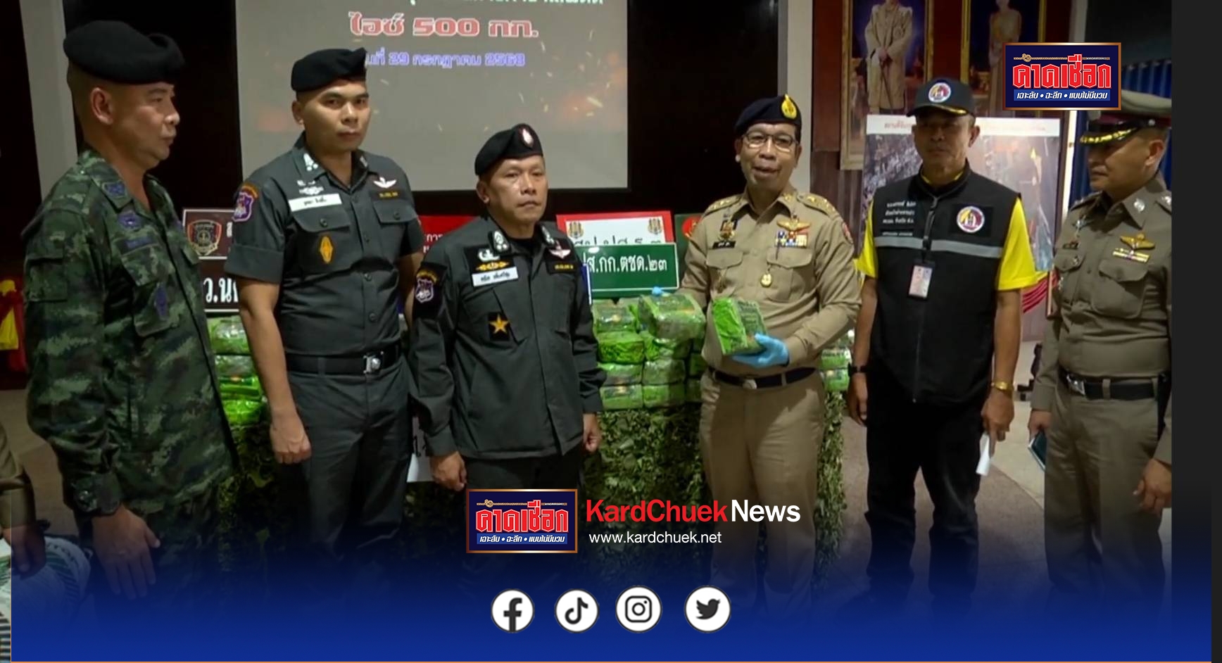 โดยเมื่อวันที่ 28 ก.ค. 2568 ชุดปฏิบัติการข่าว ร้อย ตชด.235 และ กองกำกับการตำรวจตระเวนชายแดนที่ 23 ,สืบทราบว่าจะมีกลุ่มผู้ค้ายาเสพติดลำเลียงยาเสพติดจากพื้นที่อำเภอบ้านแพง จังหวัดนครพนม แล้วนำไปพักในพื้นที่จังหวัดสกลนคร ก่อนจะส่งผ่านไปยังพื้นที่ตอนในของประเทศ จึงได้ประสานกับ ,กกล.สุรศักดิ์มนตรี ,ตำรวจน้ำ กก.10 บก.รน. ,ตำรวจภูธรจังหวัดนครพนม ,นรข.เขตนครพนม นายอำเภบ้านแพง ,สภ.บ้านแพง ได้ทำการสืบสวนจนทราบว่า กลุ่มผู้ค้ายาเสพติดได้นำยาเสพติดจำนวนมากเข้ามาพักไว้ในบ้านหลังหนึ่งในพื้นที่ อ.บ้านแพง จ.นครพนม ซึ่งเปิดเป็นร้านรับส่งพัสดุด่วน เมื่อทราบดังนั้นจึงได้รายงานให้ผู้บังคับบัญชา แล้วร่วมประชุมวางแผนจับกุม เจ้าหน้าที่ชุดจับกุมจึงได้วางกำลังซุ่มบริเวณรอบบ้านต้องสงสัย กระทั่งเวลาประมาณ 16.00 น. พบผู้ต้องหาจำนวน 6 คน ได้ช่วยกันลำเลียงกระสอบต้องสงสัยลงจากรถกระบะ 4 ประตูที่จอดอยู่ภายในบ้าน เจ้าหน้าที่จึงแสดงตัวขอตรวจค้น จากการตรวจสอบเบื้องต้นว่าพบเป็น ยาไอซ์ บรรจุอยู่ในกระสอบปุ๋ย จำนวน 11 กระสอบ เจ้าหน้าที่ชุดจับกุมจึงควบคุมตัวและตรวจยึดของกลางทั้งหมด ไปที่กองกำกับการตำรวจตระเวนชายแดนที่ 23 จ.สกลนคร เพื่อตรวจพิสูจน์ ผลการตรวจนับ พบยาไอซ์ น้ำหนักรวมกว่า 500 กก. เจ้าหน้าที่จึงแจ้งข้อกล่าวหาว่า “ร่วมกันจำหน่ายยาเสพติดให้โทษประเภท 1 (เมทแอมเฟตามีนหรือไอซ์) โดยการมีไว้เพื่อจำหน่าย อันเป็นการกระทำเพื่อการค้า ก่อให้เกิดการแพร่กระจายในกลุ่มประชาชนและทำให้เกิดผลกระทบต่อความมั่นคงของรัฐหรือความปลอดภัยของประชาชนโดยฝ่าฝืนต่อกฎหมาย” และส่งพนักงานสอบสวน สภ.บ้านแพง จ.นครพนม ดำเนินคดีตามกฎหมายต่อไป