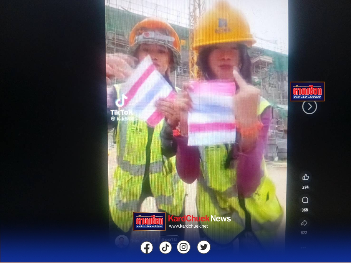 เมื่อเวลา 22.05 น.วันนี้ 29 ก.ค.68 ผู้สื่อข่าวรายงานจากปราจีนบุรี พบมีการโพสต์-แชร์คลิปภาพของ2สาวชาวกัมพูชาที่กำลังนำนิ้วกลางชูจิ้มใส่ธงชาติไทยพร้อมเต้นโชว์จากนั้นนำธงชาติวางลงพื้นแล้วใช้เท้าเหยียบ-กระทืบซ้ำ พร้อมระบุข้อความไซต์งาน จ.ปราจีนบุรี ท่ามกลางมีผู้แสดงความเห็นจำนวนมากและคาดการณ์ส่าสถานที่ในภาพน่าจะที่นิคมบ่อทอง 33 อ.กบินทร์บุรี จ.ปราจีนบุรี พร้อมที่จะนำทัวร์ไปเยี่ยมชม