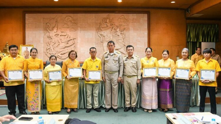 นายธวัชชัย ศรีทอง ผู้ว่าราชการจังหวัดชลบุรีเป็นประธานมอบโล่และเกียรติบัตรแก่บุคคลและหน่วยงานดีเด่นในหลายด้าน ได้แก่ มอบเกียรติบัตรแก่ผู้ได้รับคัดเลือกเป็น อาสาสมัครท้องถิ่นรักษ์โลก ดีเด่นระดับจังหวัด ตามโครงการประกวดอาสาสมัครท้องถิ่นรักษ์โลก ดีเด่นแห่งชาติ ประจำปี พ.ศ. 2567 และ 2568 จำนวน 8 ราย, มอบเกียรติบัตรการคัดสรร กิจกรรมพัฒนาชุมชนดีเด่นระดับจังหวัด จำนวน 7 ประเภท รวม 24 ราย, มอบเกียรติบัตรโครงการส่งเสริมกิจกรรม “1 อำเภอ 1 ลานสร้างสรรค์” จังหวัดชลบุรี จำนวน 6 ราย, มอบโล่และเกียรติบัตรจากการประกวดสุนทรพจน์ หัวข้อ “เทิดพระเกียรติพระบาทสมเด็จพระเจ้าอยู่หัว 28 กรกฎาคม มหามงคล” จำนวน 5 ราย, และรับมอบ แท่นยืนบรรยายขยายเสียงอเนกประสงค์ จากบริษัท วิสโก้ ซิสเท็ม จำกัด เพื่อใช้ประโยชน์ในราชการต่อไป
