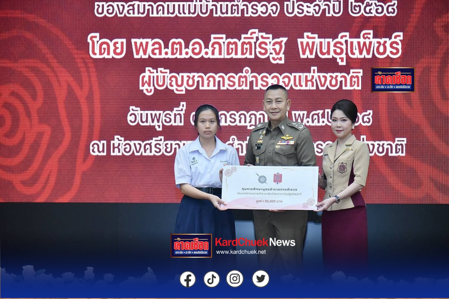 ผู้บัญชาการตำรวจแห่งชาติและนายกสมาคมแม่บ้านตำรวจ มอบทุนการศึกษาให้กับบุตรข้าราชการตำรวจ จำนวน 2,323 ทุน เพื่อสนับสนุนส่งเสริมการศึกษาอย่างต่อเนื่อง