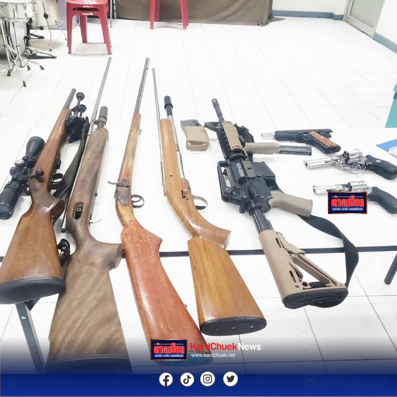 ในส่วนอาวุธปืนผิดกฎหมายที่เจ้าหน้าที่ตำรวจตรวจยึดได้จากผู้ต้องหาทั้ง 2 ราย เจ้าหน้าที่อยู่ระหว่างการขยยผลไปยังแหล่งที่มารวมถึงบุคคลอื่นที่เกี่ยวข้อง เพื่อนำตัวมาดำเนินคดีตามกฎหมายต่อไป