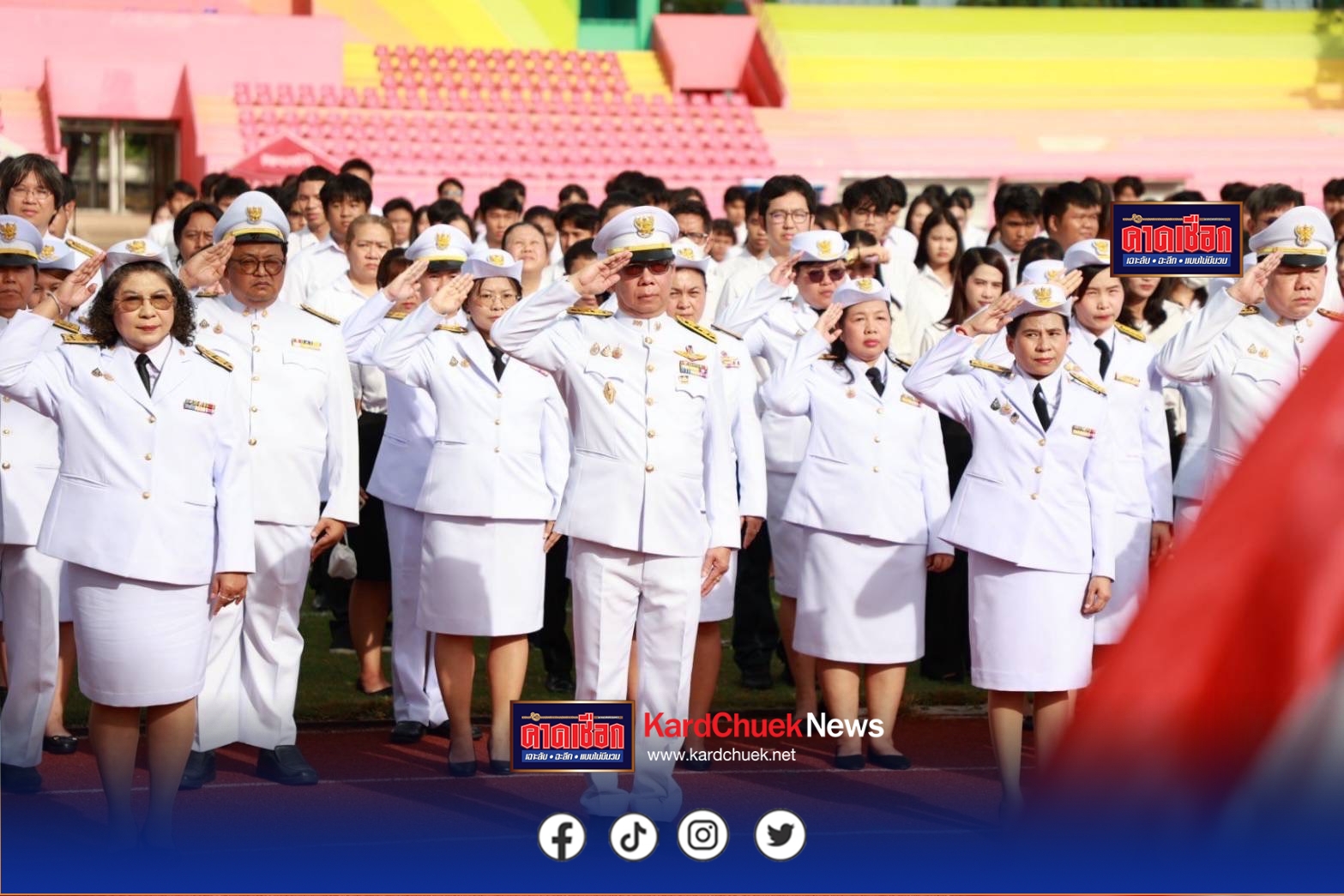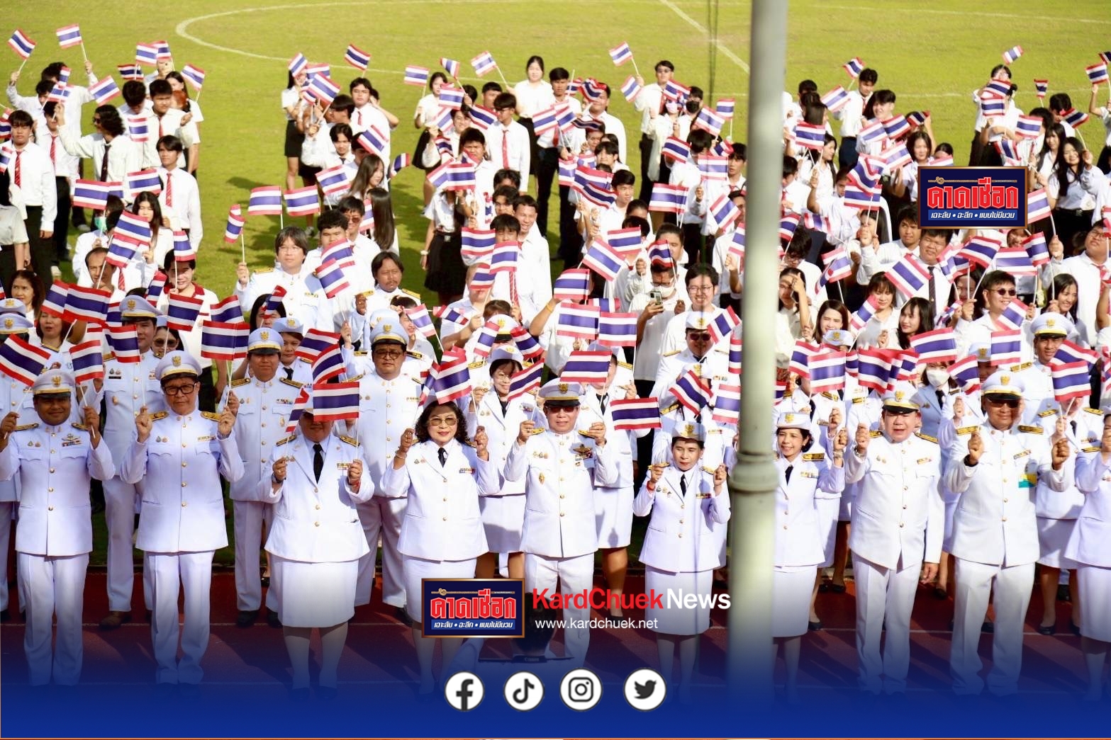 วันที่ 8 สิงหาคม 68 สนามกีฬาราชมงคลรัตนโกสินทร์ มหาวิทยาลัยเทคโนโลยีราชมงคลรัตนโกสินทร์ อ.พุทธมณฑล จ.นครปฐม รศ.ดร.อุดมวิทย์ ไชยสกุลเกียรติ อธิการบดีมหาวิทยาลัยเทคโนโลยีราชมงคลรัตนโกสินทร์ นำผู้บริหาร อาจารย์ เจ้าหน้าที่ นักศึกษา จัดกิจกรรมร่วมกันร้องเพลงชาติและโบกชาติไทย เพื่อแสดงออกเป็นสัญลักษณ์ในการแสดงออกเพื่อให้กำลังใจเจ้าหน้าที่ทหาร ตำรวจ และผู้ที่เกี่ยวข้องกับการปกป้องดินแดนและอธิปไตยของไทย ซึ่งเป็นช่วงที่เกิดสถานการณ์ตามแนวชายแดนไทย กัมพูชา ที่ปรากฏในช่วงนี้