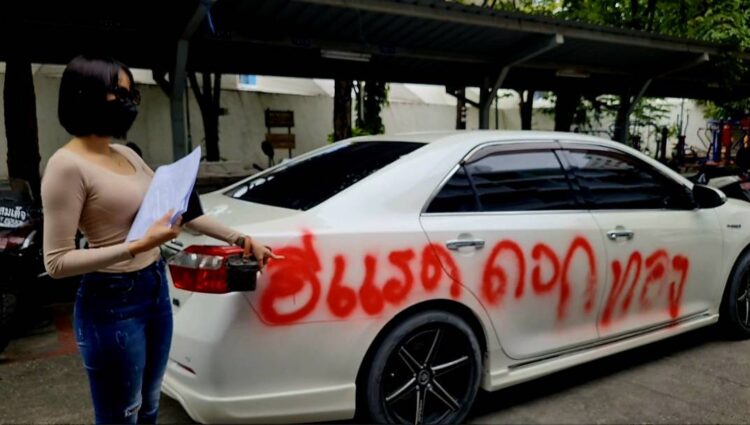 สาวพีอาร์โร่แจ้งความถูกแฟนเก่าตามราวีส่งลูกน้องรุมทำร้าย พ่นสีสเปรย์ด่าใส่รถยนต์ ด้าน ตร.รู้ตัวแล้ว