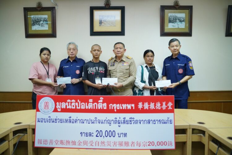 วานนี้ (วันศุกร์ที่ 8 สิงหาคม พ.ศ. 2568) มูลนิธิป่อเต็กตึ๊ง นำโดย นายวิชิต ชินวงศ์วรกุล รองประธานกรรมการ พร้อมด้วย นายชาญกิจ วิทยาวรากรณ์ กรรมการ นำทีมแผนกสาธารณภัย ฝ่ายสังคมสงเคราะห์ นำโดย นางศิริพร กระจ่างหล้า ผู้จัดการฝ่ายสังคมสงเคราะห์ และ นายรัชพร ประสงค์ทรัพย์ หัวหน้าแผนกสาธารณภัย เข้าเยี่ยมเยียนพร้อมให้กำลังใจแก่ผู้บาดเจ็บและญาติผู้เสียชีวิตจากเหตุโรงงานพลุระเบิด ตำบลบ้านโพธิ์ อำเภอเมือง จังหวัดสุพรรณบุรี โดยมอบเงินปลอบขวัญจำนวน 1 รายๆ ละ 5,000 บาท และมอบเงินช่วยเหลือค่าฌาปนกิจแก่ครอบครัวผู้เสียชีวิต รวม 9 รายๆ ละ 20,000 บาท รวมงบประมาณการช่วยเหลือทั้งสิ้น 185,000 บาท (หนึ่งแสนแปดหมื่นห้าพันบาทถ้วน) โดยมี นายพิริยะ ฉันทดิลก ผู้ว่าราชการจังหวัดสุพรรณบุรี เป็นประธานในพิธี ณ ศาลากลางจังหวัดสุพรรณบุรี อำเภอเมือง จังหวัดสุพรรณบุรี
