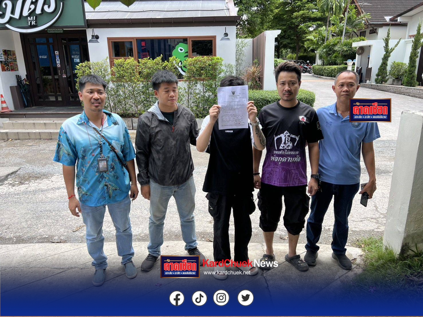 โดยแจ้งข้อกล่าวหาว่า “ร่วมกันฉ้อโกงประชาชนและร่วมกันโดยทุจริตหรือโดยหลอกลวง นำเข้าสู่ระบบคอมพิวเตอร์ซึ่งข้อมูลคอมพิวเตอร์ที่ บิดเบือนหรือปลอม ไม่ว่าทั้งหมดหรือบางส่วน หรือข้อข้อมูลคอมพิวเตอร์อันเป็นเท็จโดยประการที่น่าจะเกิดความเสียหายแก่ประชาชน และเปิดหรือยินยอมให้บุคคลอื่นใช้บัญชีเงินฝาก บัตรอิเล็กทรอนิกส์หรือบัญชีเงินอิเล็กทรอนิกส์ของตน โดยมิได้มีเจตนาใช้เพื่อตนหรือเพื่อกิจการที่ตนเกี่ยวข้องโดยประการที่รู้หรือควรรู้ว่าจะนำไปใช้ในการกระทำความผิดเกี่ยวกับอาชญากรรมทางเทคโนโลยีหรือความผิดทางอาญาอื่นใด และร่วมกันฟอกเงิน”