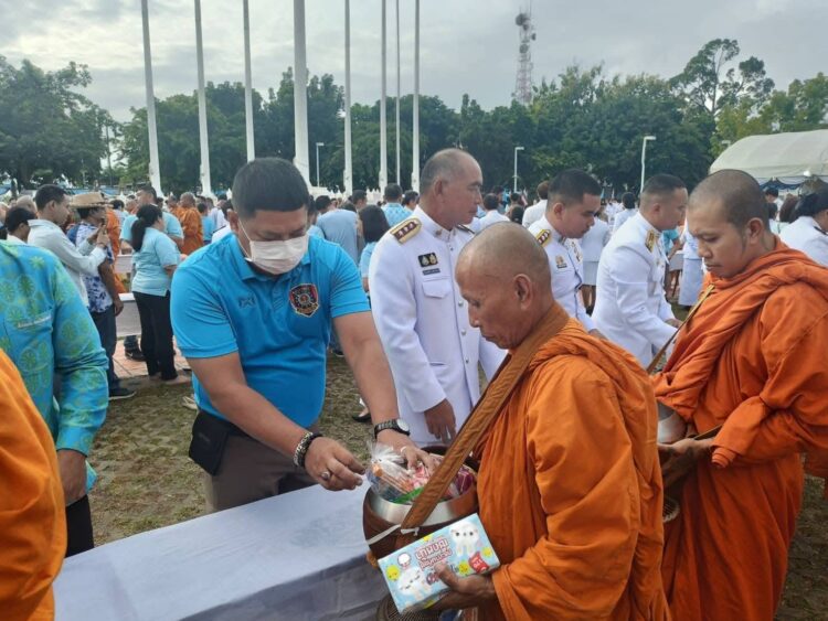 วันที่ (12 สิงหาคม 2568) เวลา 07.00 น. ที่บริเวณหน้าศาลากลางจังหวัดกระบี่ พ.ต.ต.ญาณภัทร กรดดำ พร้อมด้วยข้าราชการตำรวจ แม่บ้านตำรวจ เข้าร่วมพิธีเจริญพระพุทธมนต์และทำบุญตักบาตรพระสงฆ์ สามเณร จำนวน 93 รูป ถวายพระราชกุศลแด่สมเด็จพระนางเจ้าสิริกิติ์ พระบรมราชินีนาถ พระบรมราชชนนีพันปีหลวง เนื่องในโอกาสมหามงคลเฉลิมพระชนมพรรษา 12 สิงหาคม มีนายอังกูร ศีลาเทวากูล ผู้ว่าราชการจังหวัดกระบี่ เป็นประธาน จุดธูปเทียนเครื่องนมัสการบูชาพระรัตนตรัย ถวายธูปเทียนแพ เปิดกรวยกระทงดอกไม้ หน้าพระฉายาลักษณ์ สมเด็จพระนางเจ้าสิริกิติ์ พระบรมราชินีนาถ พระบรมราชชนนีพันปีหลวง โดยมีหัวหน้าส่วนราชการ ข้าราชการ องค์กรปกครองส่วนท้องถิ่น ประชาชนทุกหมู่เหล่า เข้าร่วมพิธีทำบุญตักบาตรโดยพร้อมเพรียงกัน