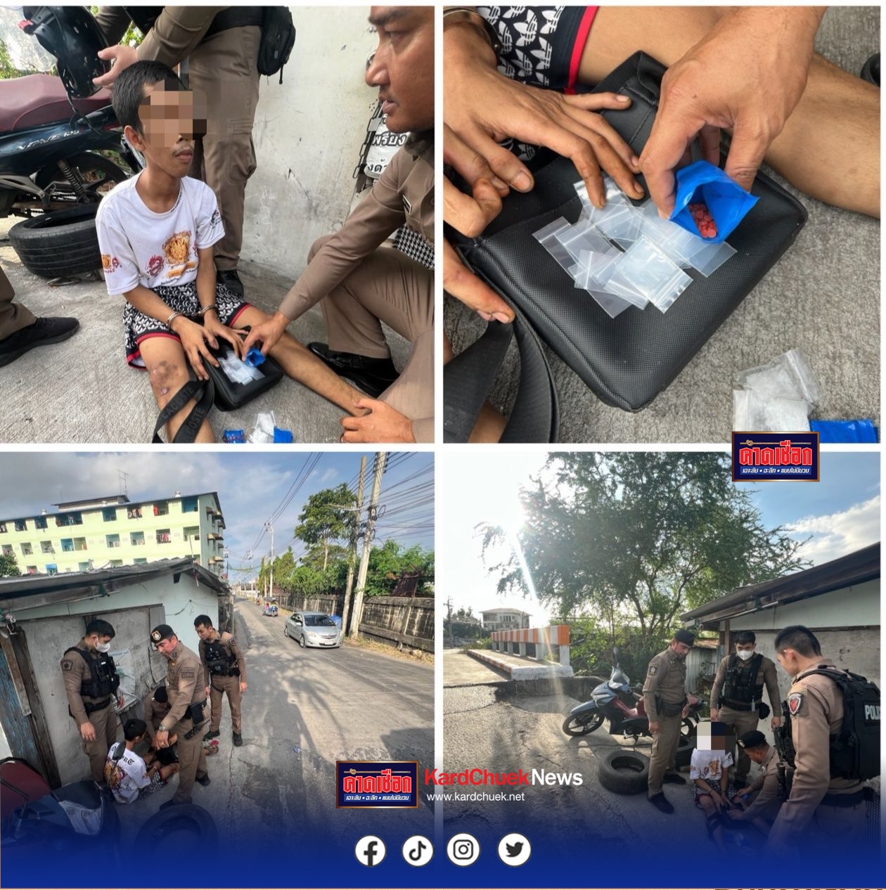 –เมื่อเวลา 17.50 น.ของวันที่ 13 ส.ค.68 ภายใต้การอำนวยการของ นาย ศุภมิตร ชินศรี ผู้ว่าราชการจังหวัดสมุทรปราการพล.ต.ต.วิชิต บุญชินวุฒิกุล ผบก.ภ.จว.สมุทรปราการ พ.ต.อ.พจนกร กัญจินะ ผกก.สภ.พระสมุทรเจดีย์ ตามนโยบาย NO DRUGS NO DEALERS ซึ่งมีเจ้าหน้าที่ตำรวจชุดจับกุม นำโดย พ.ต.ท.จตุภพ รามนัฏ รอง ผกก.ป.สภ.พระสมุทรเจดีย์ พ.ต.ต.กิตติกานต์ กองเศรษฐ์ สวป.และเจ้าหน้าที่สายตรวจ สภ.พระสมุทรเจดีย์ได้ร่วมกันจับกุม นาย เดชาสิทธิ เงินมาบุญช่วย อายุ 19 ปี พนักงานร้านค้าของเก่า อยู่บ้านเลขที่ 65 ม.2 ต.โนนโพธิ์ อ.เมืองอำนาจเจริญ จ.อำนาจเจริญ พร้อมด้วยของกลาง ยาไอซ์ บรรจุอยู่ในถุงพลาสติกใสชนิด กดปิด-เลื่อนเปิด จำนวน 4 ถุง น้ำหนักรวม 19.67 กรัม ยาเสพติดให้โทษประเภทที่ 1 (ยาบ้า) จำนวน 735 เม็ด ถุงพลาสติกใสชนิด กดปิด-เลื่อนเปิด ขนาด 1.5 x 1 นิ้ว จำนวน 27 ถุง โทรศัพท์มือถือ ยี่ห้อ OPPO รุ่น RENO 2 F สีน้ำเงิน จำนวน 1 เครื่องกระเป๋าสะพายข้างสีดำ จำนวน 1 ใบและรถจักรยานยนต์ ยี่ห้อ ฮอนด้า รุ่น เวฟ 125i สี น้ำเงิน-แดง หมายเลขทะเบียน 3 ข ศ 7555 กทม จำนวน 1 คัน โดยกล่าวหาว่า มียาเสพติดให้โทษประเภทที่ 1 (ยาบ้า) ไว้ในครอบครองเพื่อจำหน่ายโดยผิดกฎหมาย และเสพยาเสพติดให้โทษประเภทที่ 1 (เมทแอมเฟตามีน) โดยผิดกฎหมาย โดยจับคุมได้ที่บริเวณทางปูนภายในซอยสองพี่น้องม.1 ต.ปากคลองบางปลากด อ.พระสมุทรเจดีย์ จ.สมุทรปราการ