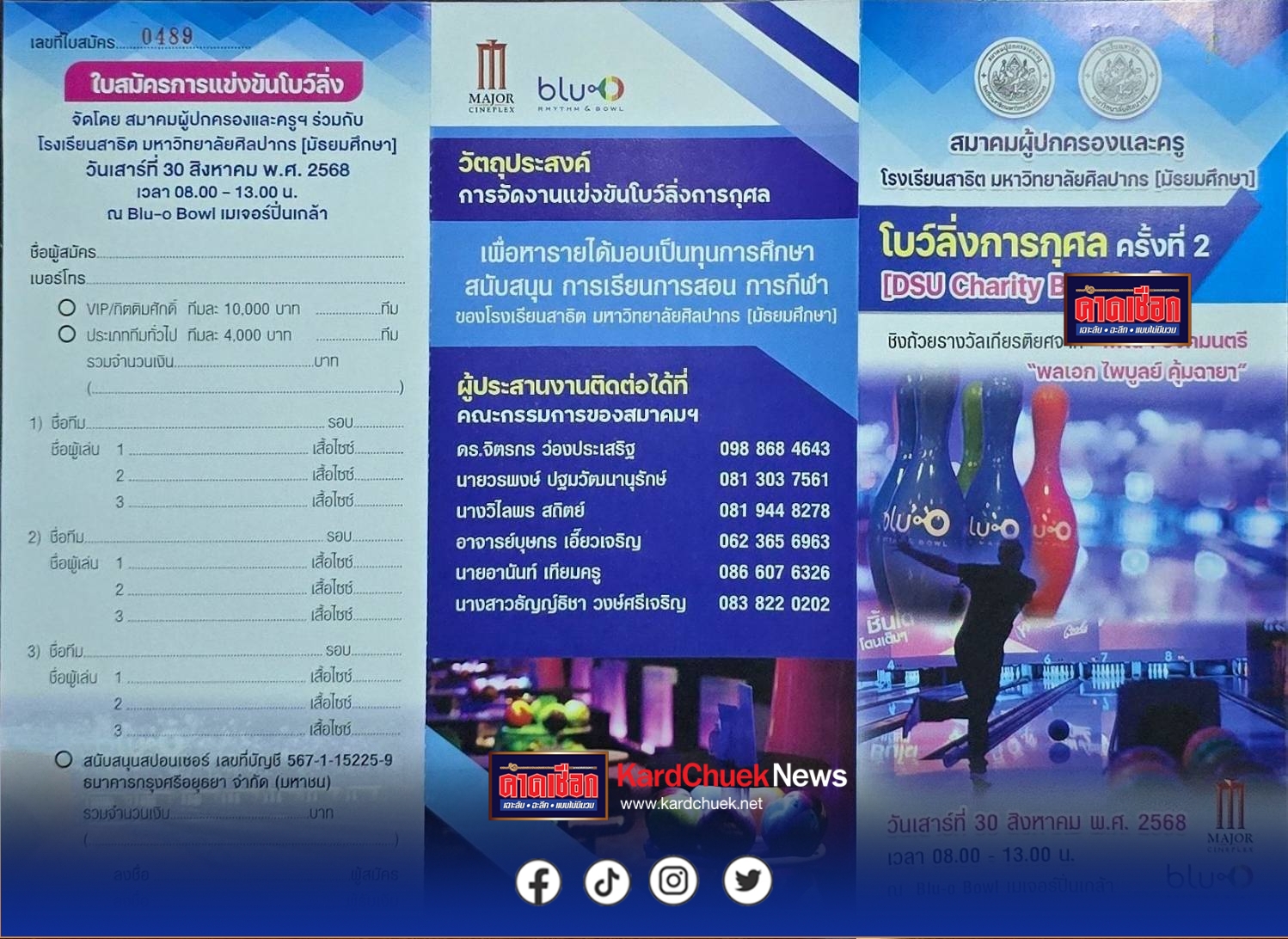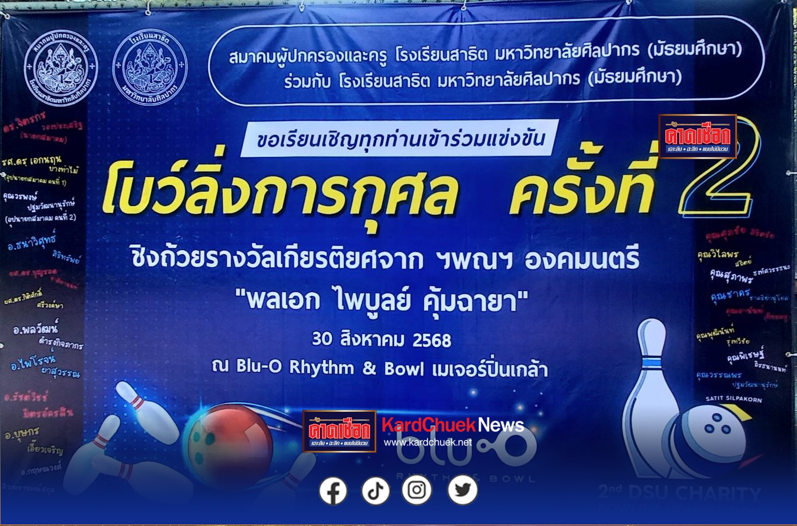 สมาคมผู้ปกครองและครู โรงเรียนสาธิต มหาวิทยาลัยศิลปากร (มัธยมศึกษา) ร่วมกับโรงเรียนสาธิต มหาวิทยาลัยศิลปากร (มัธยมศึกษา) จัดโบว์ลิ่งการกุศล ครั้งที่ 2 ชิงถ้วยเกียรติยศ พลเอกไพบูลย์ คุ้มฉายา องคมนตรี