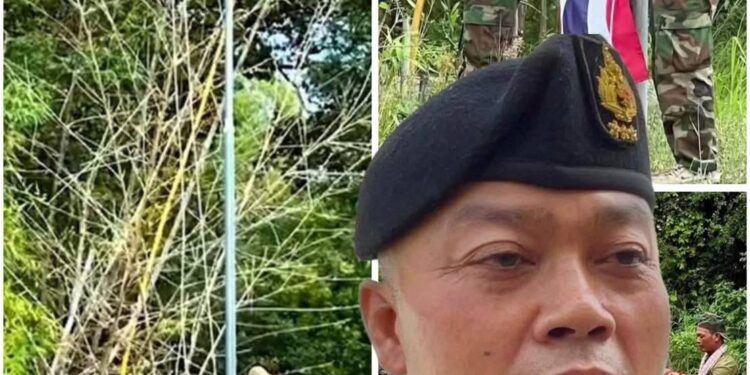 โดยฐานเสาธงที่ปรากฏในภาพ คาดว่าเป็นเสาธงของหน่วยทหารกัมพูชาในพื้นที่ และมีการตัดต่อภาพให้เป็นธงชาติไทย
