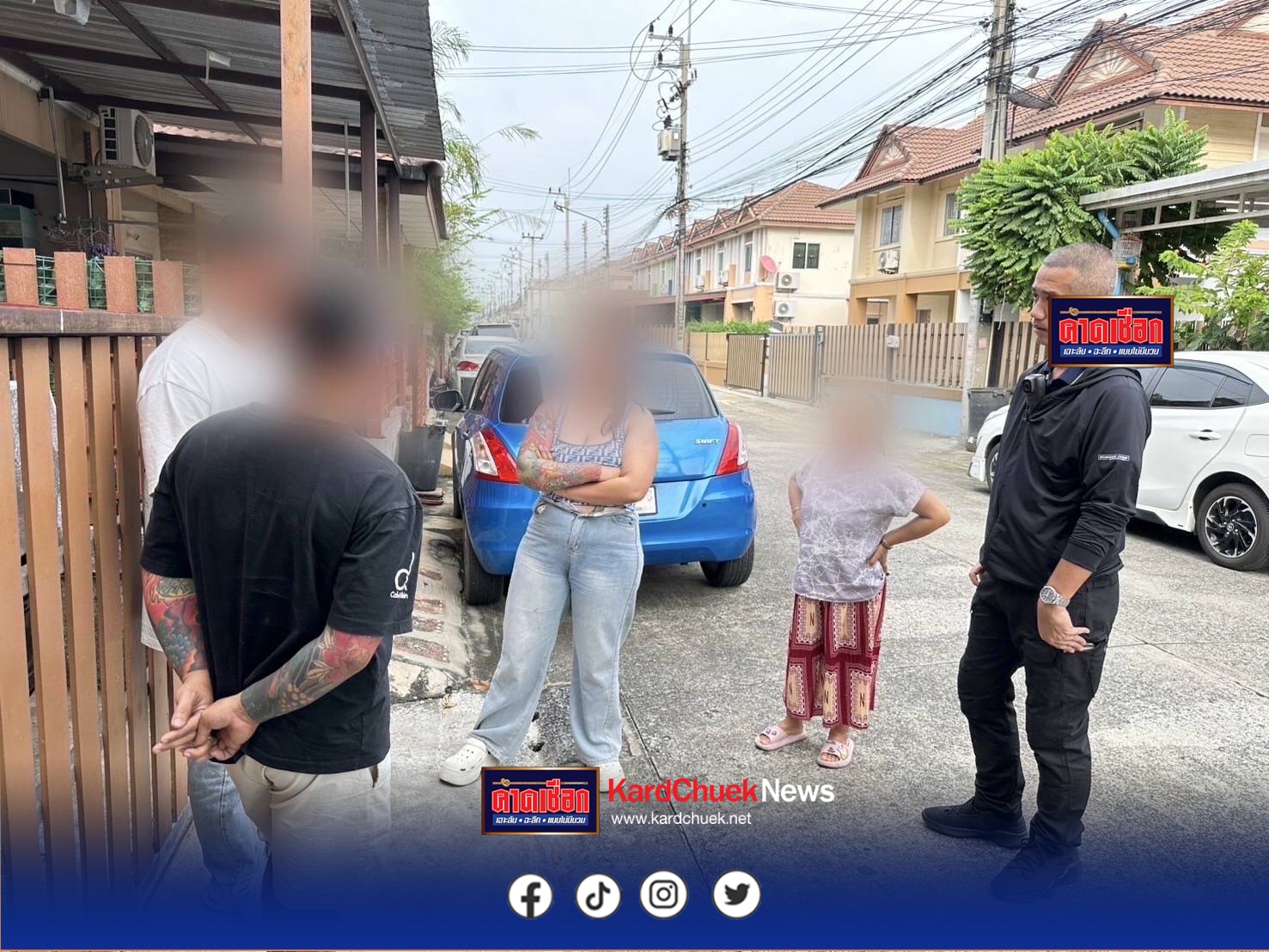 สถานที่จับกุม บริเวณหน้าบ้านพัก ซอย10/2 ต.คลองสาม อ.คลองหลวง จ.ปทุมธานี