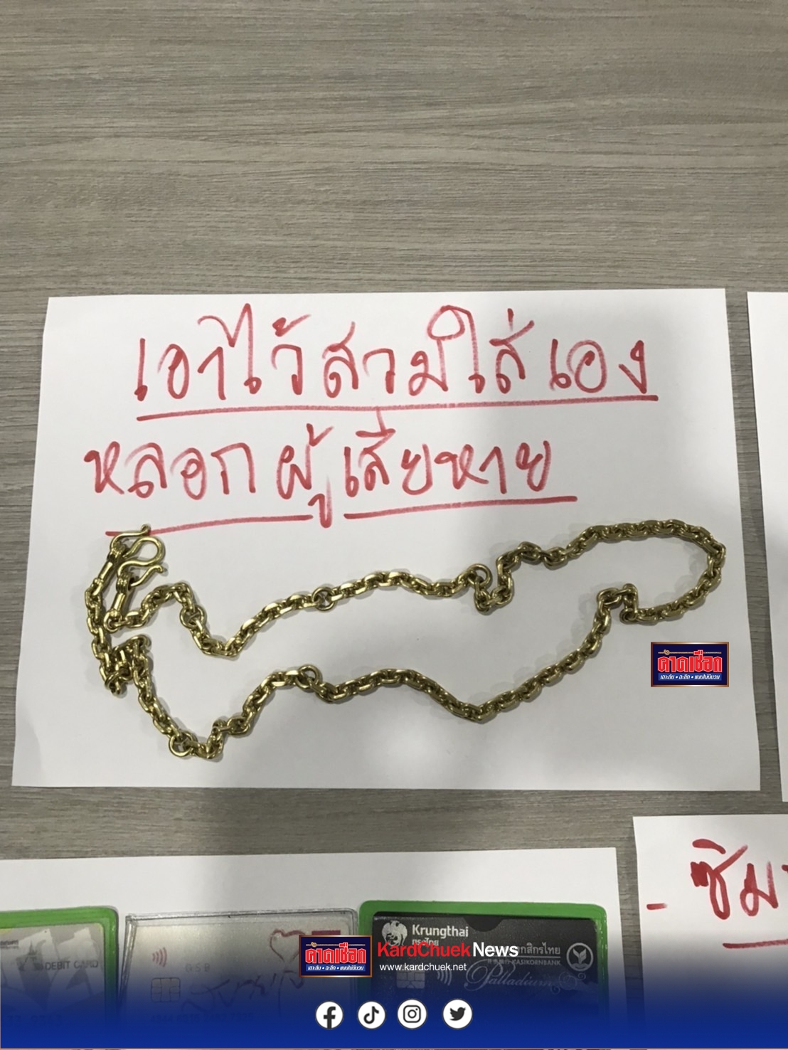 ทางด้าน นายสมชัย ภิณโญโสภณ อายุ 67 ปี โชเฟอร์แท็กซี่ (ผู้เสียหาย) สีเขียว-เหลือง หมายเลขทะเบียน 1 มข 8303 กทม. กล่าวว่า เหตุเกิดประมาณวันที่ 17 ก.ค. 68 คนร้ายเรียกรถตนแถวสี่แยกพรานนก บอกมีบัตรเอทีเอ็ม ในบัตรมีเงินอยู่ 800,000 บาท จะให้ตนไปแวะกดให้ แต่ขอลงกลางทางเพื่อซื้อของก่อน ให้ตนขับรถไปกดเงินให้มีคนใส่กระโปรงสีแดงรออยู่และพาไปกดเงินครั้งละ 20,000 บาท จำนวน 2 ครั้ง ระหว่างนั้นคนร้ายได้ขอของมีค่าที่ตนเอาค้ำไว้ ซึ่งตนพยายามขอคืนแต่คนร้ายไม่ให้บอกว่าเดี๋ยวค่อยกลับมาเอาก็ได้ ทรัพย์สินของตนมีหลวงพ่อโสธรเลี่ยมทอง 1 องค์ และแหวนเพชรของเตี่ย มูลค่าประมาณ 150,000 บาท พอตนไปถึงจุดที่คนร้ายบอกกลับไม่เจอใครจึงวนรถกลับมาดูคนร้ายก็หายไปแล้วจึงรู้ว่าถูกหลอก