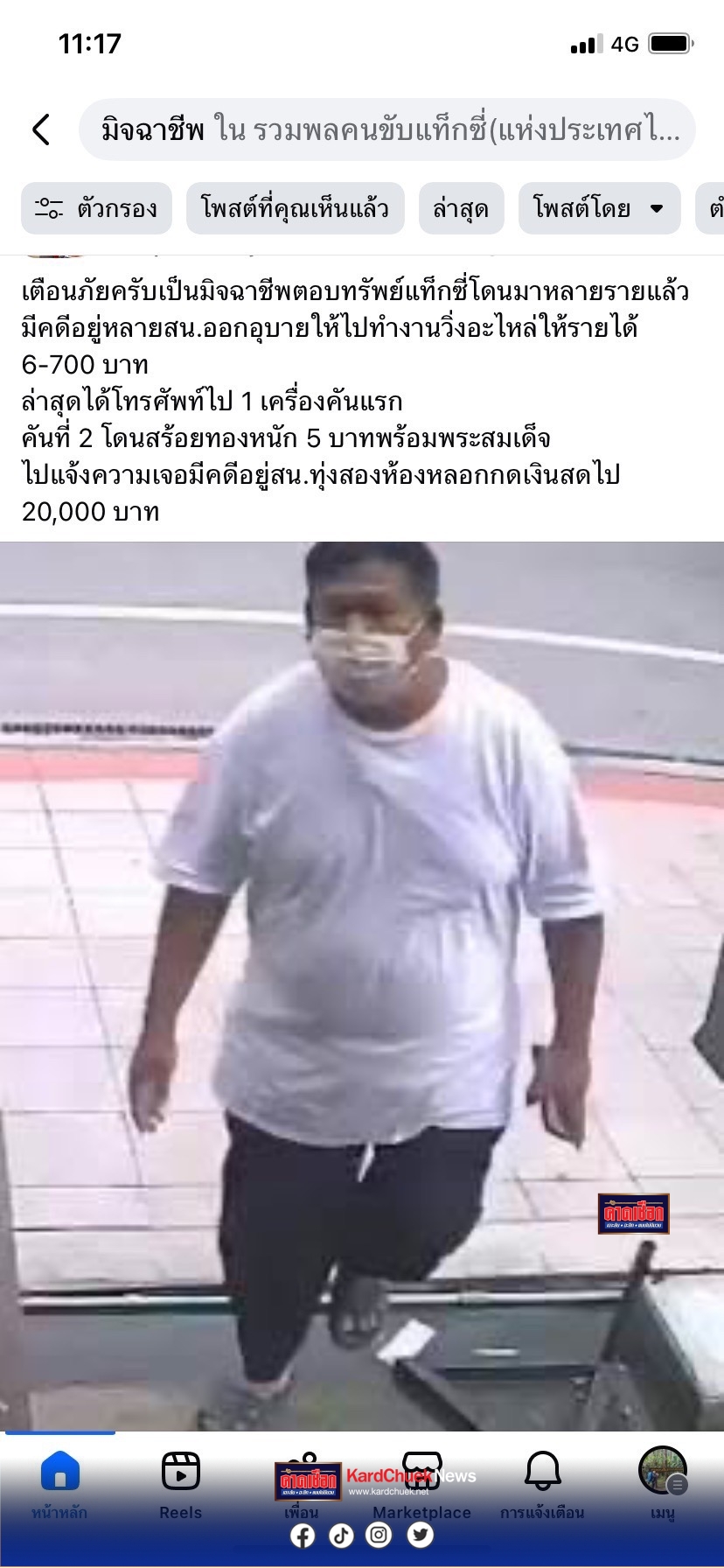 ทางด้าน นายสมชัย ภิณโญโสภณ อายุ 67 ปี โชเฟอร์แท็กซี่ (ผู้เสียหาย) สีเขียว-เหลือง หมายเลขทะเบียน 1 มข 8303 กทม. กล่าวว่า เหตุเกิดประมาณวันที่ 17 ก.ค. 68 คนร้ายเรียกรถตนแถวสี่แยกพรานนก บอกมีบัตรเอทีเอ็ม ในบัตรมีเงินอยู่ 800,000 บาท จะให้ตนไปแวะกดให้ แต่ขอลงกลางทางเพื่อซื้อของก่อน ให้ตนขับรถไปกดเงินให้มีคนใส่กระโปรงสีแดงรออยู่และพาไปกดเงินครั้งละ 20,000 บาท จำนวน 2 ครั้ง ระหว่างนั้นคนร้ายได้ขอของมีค่าที่ตนเอาค้ำไว้ ซึ่งตนพยายามขอคืนแต่คนร้ายไม่ให้บอกว่าเดี๋ยวค่อยกลับมาเอาก็ได้ ทรัพย์สินของตนมีหลวงพ่อโสธรเลี่ยมทอง 1 องค์ และแหวนเพชรของเตี่ย มูลค่าประมาณ 150,000 บาท พอตนไปถึงจุดที่คนร้ายบอกกลับไม่เจอใครจึงวนรถกลับมาดูคนร้ายก็หายไปแล้วจึงรู้ว่าถูกหลอก