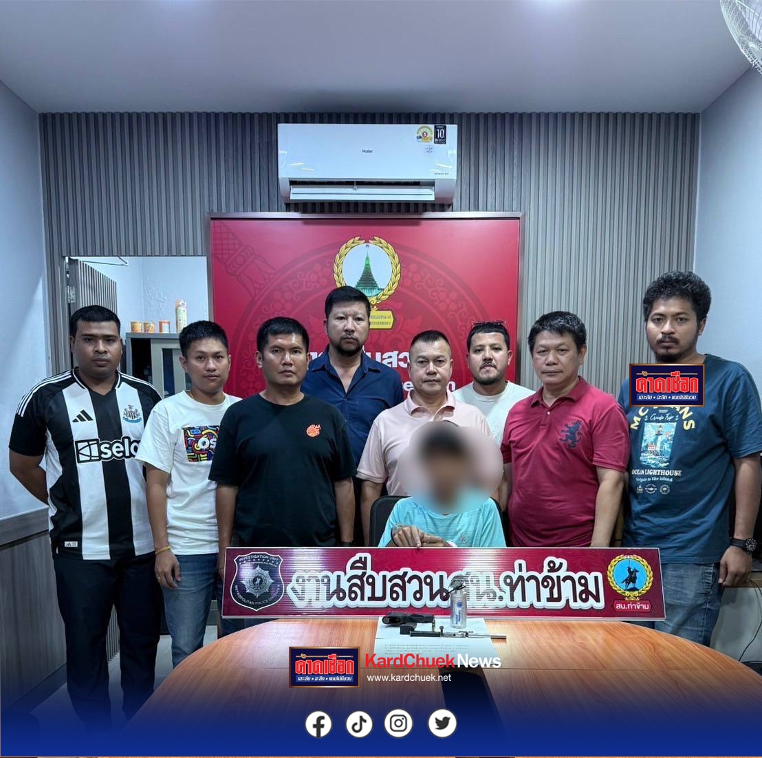 เบื้องต้นจึงถูกแจ้งข้อหาว่า “มีอาวุธปืน วัตถุระเบิดและเครื่องกระสุนปืน ไว้ในครอบครองโดยไม่ได้รับอนุญาต” ก่อนนำตัวพร้อมของกลางส่งพนักงานสอบสวน สน.ท่าข้าม เพื่อดำเนินคดีตามกฎหมายต่อไป.