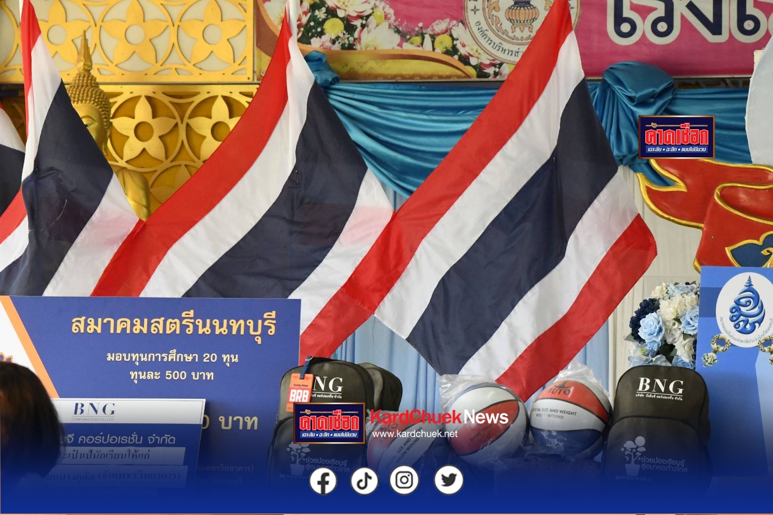 วันนี้ (22 สิงหาคม 2568) เวลา 08.30 น. ณ โรงเรียนสามแยกบางคูลัด อำเภอบางใหญ่ จ.นนทบุรี สมาคมแม่ดีเด่นแห่งชาติประจำจังหวัดนนทบุรี ร่วมกับสมาคมสตรีนนทบุรีและสมาคมนักธุรกิจและวิชาชีพแห่ประเทศไทย – ปทุมนนท์ จัดกิจกรรมมอบทุนการศึกษาแก่นักเรียน เพื่อเฉลิมพระเกียรติและถวายเป็นพระราชกุศล เนื่องในวันเฉลิมพระชนมพรรษาสมเด็จพระพันปีหลวง 12 สิงหาคม 2568 โดย คุณเบญจมาศชาญประดิษฐ์ นายกสมาคมแม่ดีเด่น นนทบุรี คุณภัทรพร สันตธาดาพรนายกสมาคมนักธุรกิจหญิงปทุมนนท์ คุณกัณตนา ตันติพิพัฒน์ นายกสมาคมสตรีนนทบุรี คุณอุไร พึ่งสุขแดง หรือ ทีมงานสร้างสุข คุณพูนศรี จงแสงทอง นายสุรชัย โคตรบุตรดี นายอำเภอบางใหญ่ คุณพนม พึ่งสุขแดง นายกสมาคมกำนัน ผู้ใหญ่บ้านจังหวัดนนทบุรี และคณะได้ร่วมจัดกิจกรรมมอบทุนการศึกษาแก่นักเรียนจำนวน 80 ทุน มอบกระเป๋าเป้นักเรียน จำนวน 200 ใบ เพื่อเฉลิมพระเกียรติและถวายเป็นพระราชกุศลเนื่องในวันเฉลิมพระชนมพรรษาสมเด็จพระพันปีหลวง 12 สิงหาคม 2568 โดยสิ่งของที่นำมามอบให้แก่นักเรียนในวันนี้ประกอบด้วย กระเป๋าเป้นักเรียน จำนวน 200 ใบ ทุนการศึกษา 80 ทุน ๆ ละ 500 บาท สมาคมนักธุรกิจและวิชาชีพแห่งประเทศไทย – ปทุมนนท์ มอบทุนการศึกษา 20,000 บาท สมาคมสตรีนนทบุรี มอบทุนการศึกษา 10,000 บาท คุณวิไล มอบทุนการศึกษา 20 ทุน เป็นเงิน 10,000 บาท. คุณปานวาด มอบทุนการศึกษา 20 ทุน เป็นเงิน 10,000 บาท คุณชฎาทิพย์ มอบทุนการศึกษา 5 ทุน เป็นเงิน 2,500 บาท คุณกุลดา มอบทุนการศึกษา 5 ทุนเป็นเงิน 2,500 บาท คุณสมลักษณ์ มอบทุนการศึกษา 5 ทุน เป็นเงิน 2,500 บาท คุณสุกัญญา มอบทุนการศึกษา 20 ทุน เป็นเงิน10,000 บาท คุณระเบียบ มอบทุนการศึกษา 10 ทุนเป็นเงิน 5,000 บาท คุณลออ มอบทุนการศึกษา 10 ทุน เป็นเงิน 5,000 บาท เบญจมาศ มอบทุนการศึกษา 10,000 บาท และคุณเล็กธิติยา มอบทุนการศึกษา 5,000 บาท