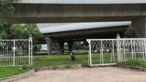เมื่อเวลา 16.30 น. วันที่ 23 ส.ค.68 ผู้สื่อข่าวลงพื้นที่ตรวจสอบบริเวณใต้สะพานมหาเจษฎาบดินทรานุสรณ์ ซึ่งเป็นจุดที่เจ้าหน้าที่พบเสื้อผ้าของนักโทษถูกทิ้งไว้ โดยบริเวณดังกล่าวเป็นพื้นที่คาดมีคนไร้บ้านอาศัยอยู่ประปราย ตามมุมต่าง ๆ ใต้สะพาน