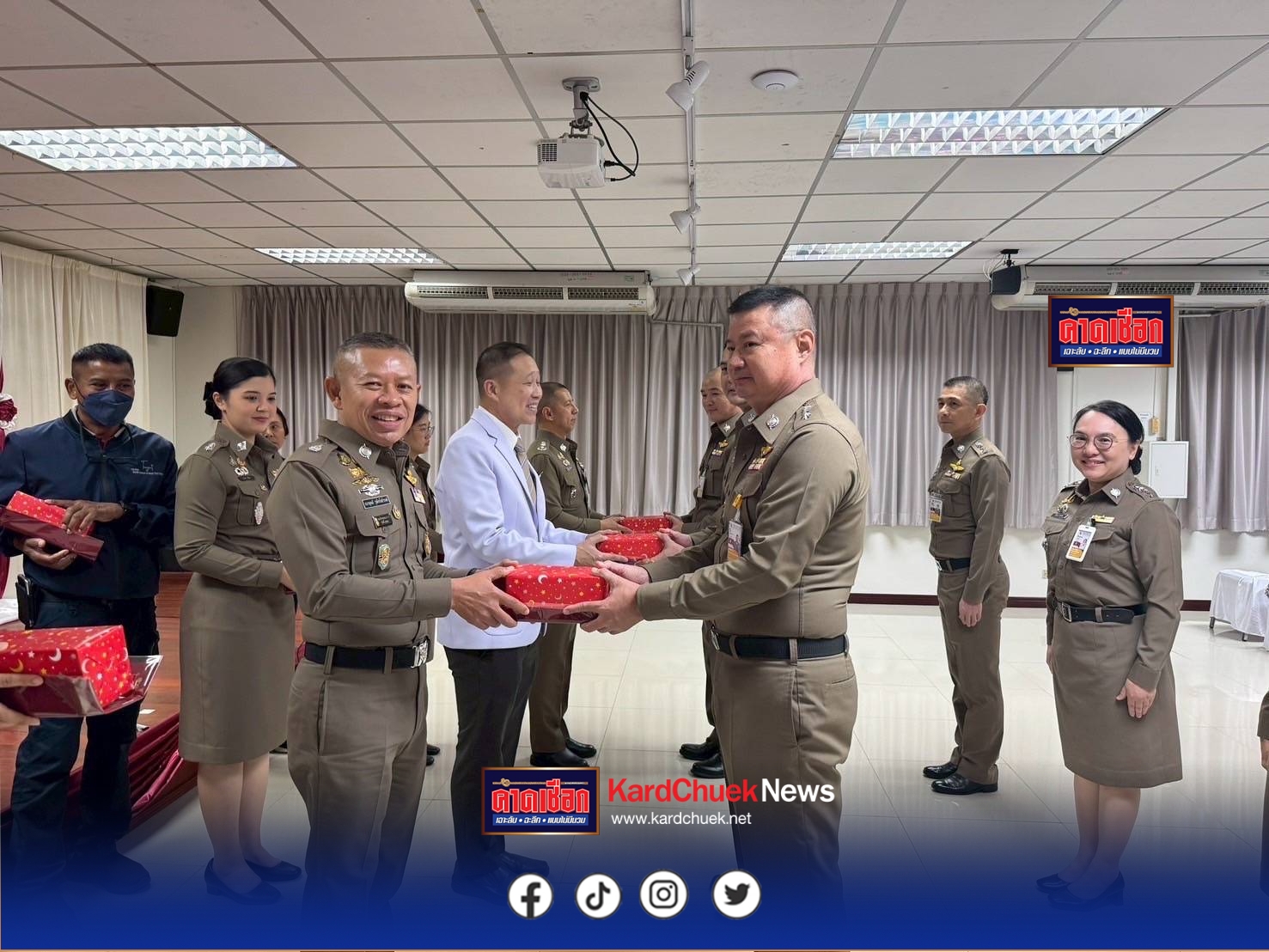 พร้อมทั้งมอบของที่ระลึกแก้ว จำนวน 132 ใบ, ผ้ายันต์ท้าวเวสสุวรรณ จำนวน 132 ผืน ให้กับข้าราชการตำรวจในสังกัด นต.รพ.ตร. ทุกนาย เพื่อเป็นขวัญกำลังใจให้กับข้าราชการตำรวจ