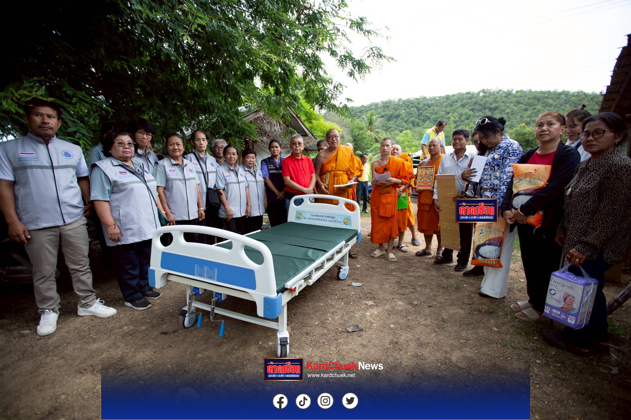 หลวงพี่น้ำฝน และคณะศิษย์ มอบเตียงผู้ป่วยช่วยตัวเองไม่ได้ 6 ราย