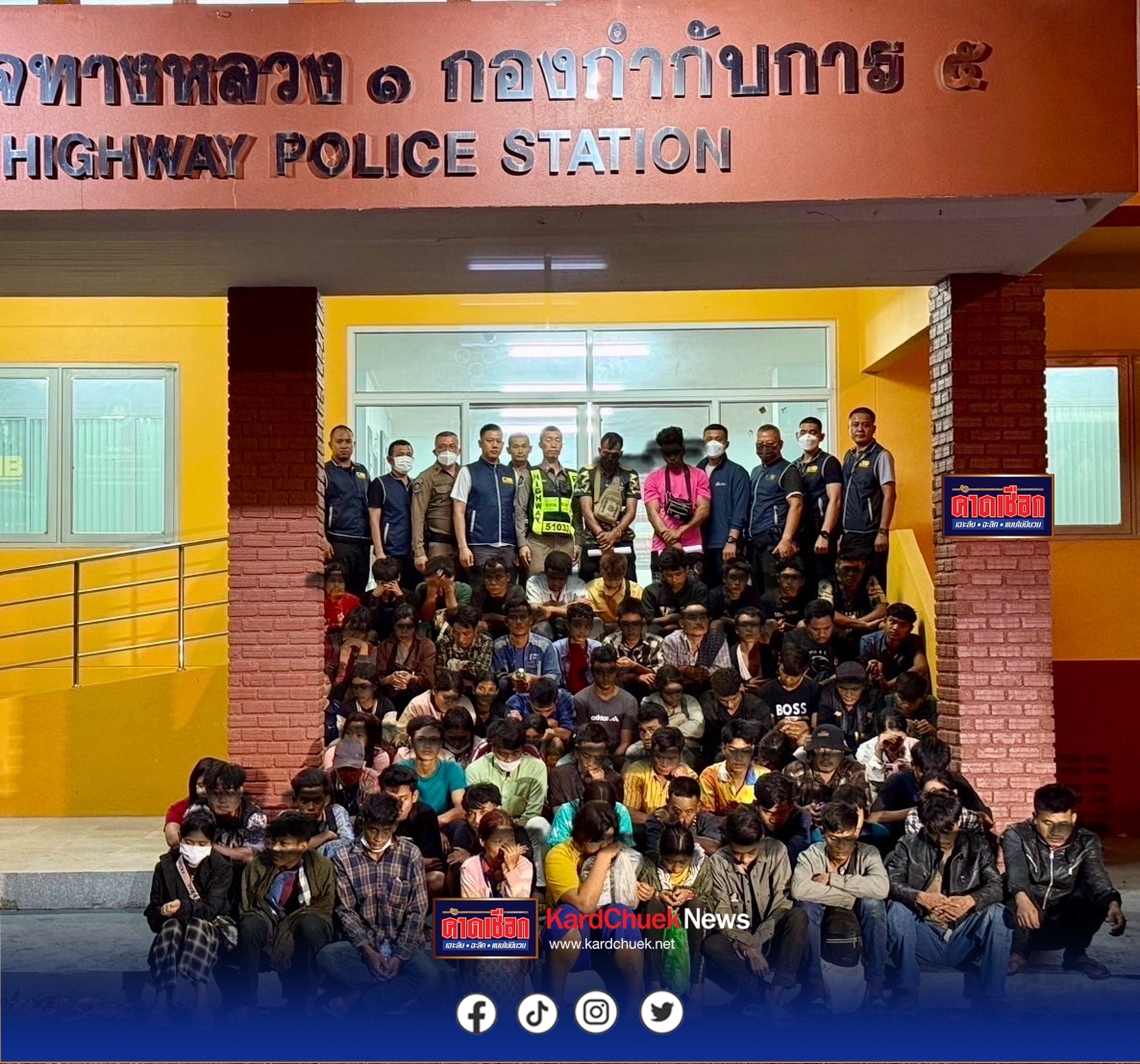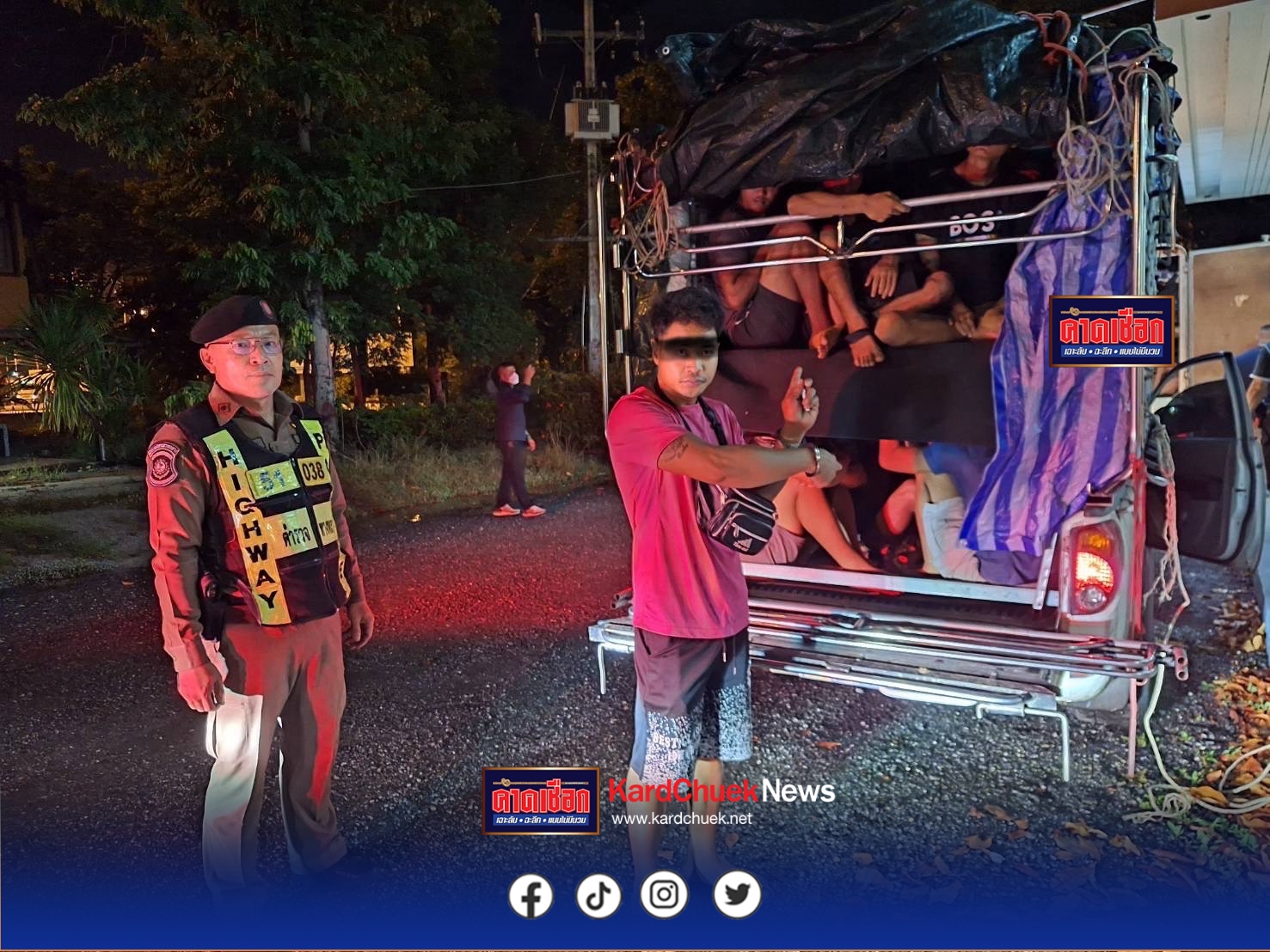 ตำรวจสอบสวนกลาง (CIB) โดยตำรวจทางหลวงตาก สกัดทันควัน! ตร.ทางหลวงตาก จับกระบะตู้ทึบ ขนแรงงานเถื่อน 71 ชีวิต