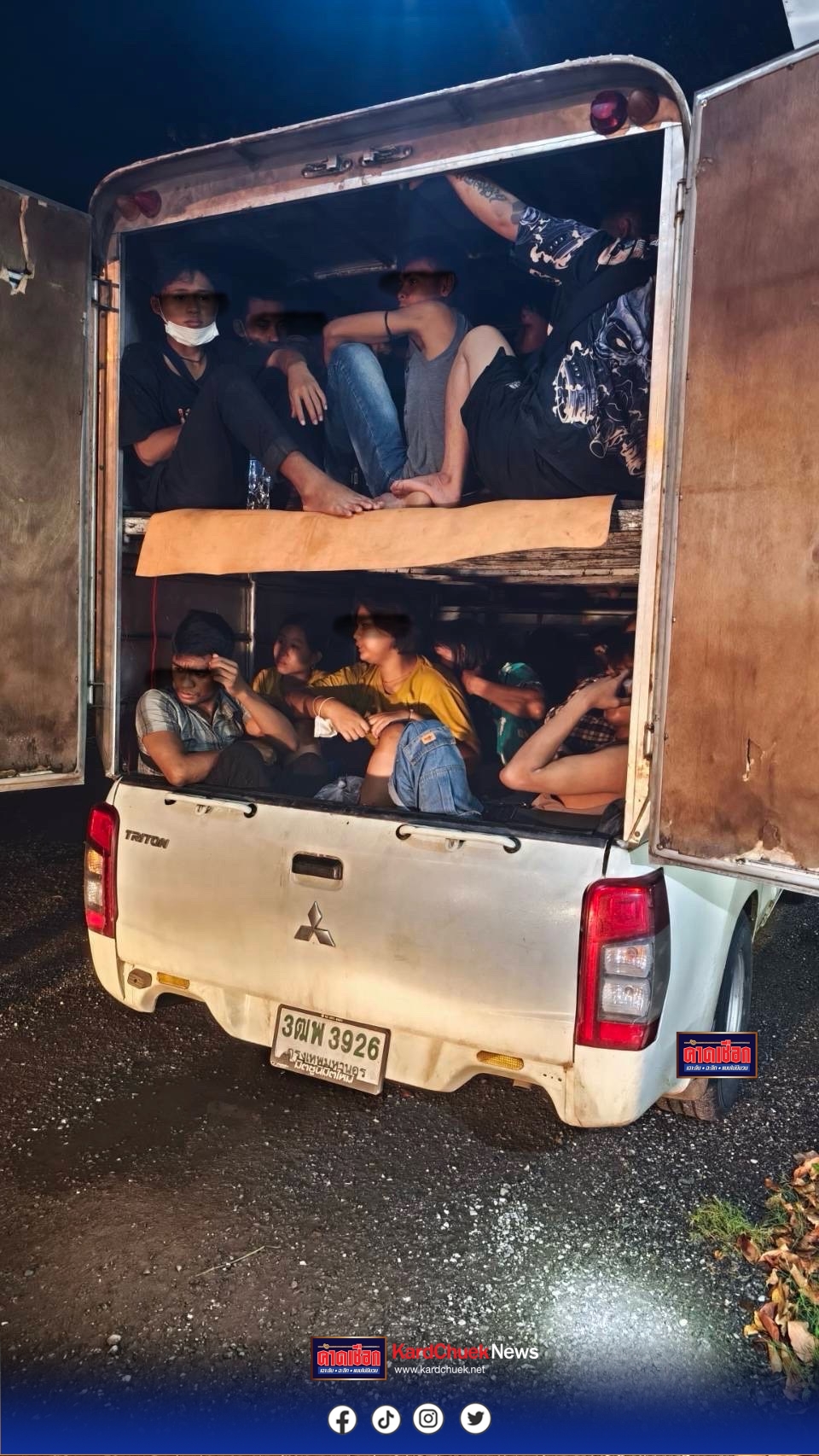 3 คนนั่งอยู่ด้วย ซึ่งจากการตรวจสอบไม่มีเอกสารการเดินทางที่ถูกต้อง และเมื่อเปิดตู้ทึบด้านหลังออกถึงกับ