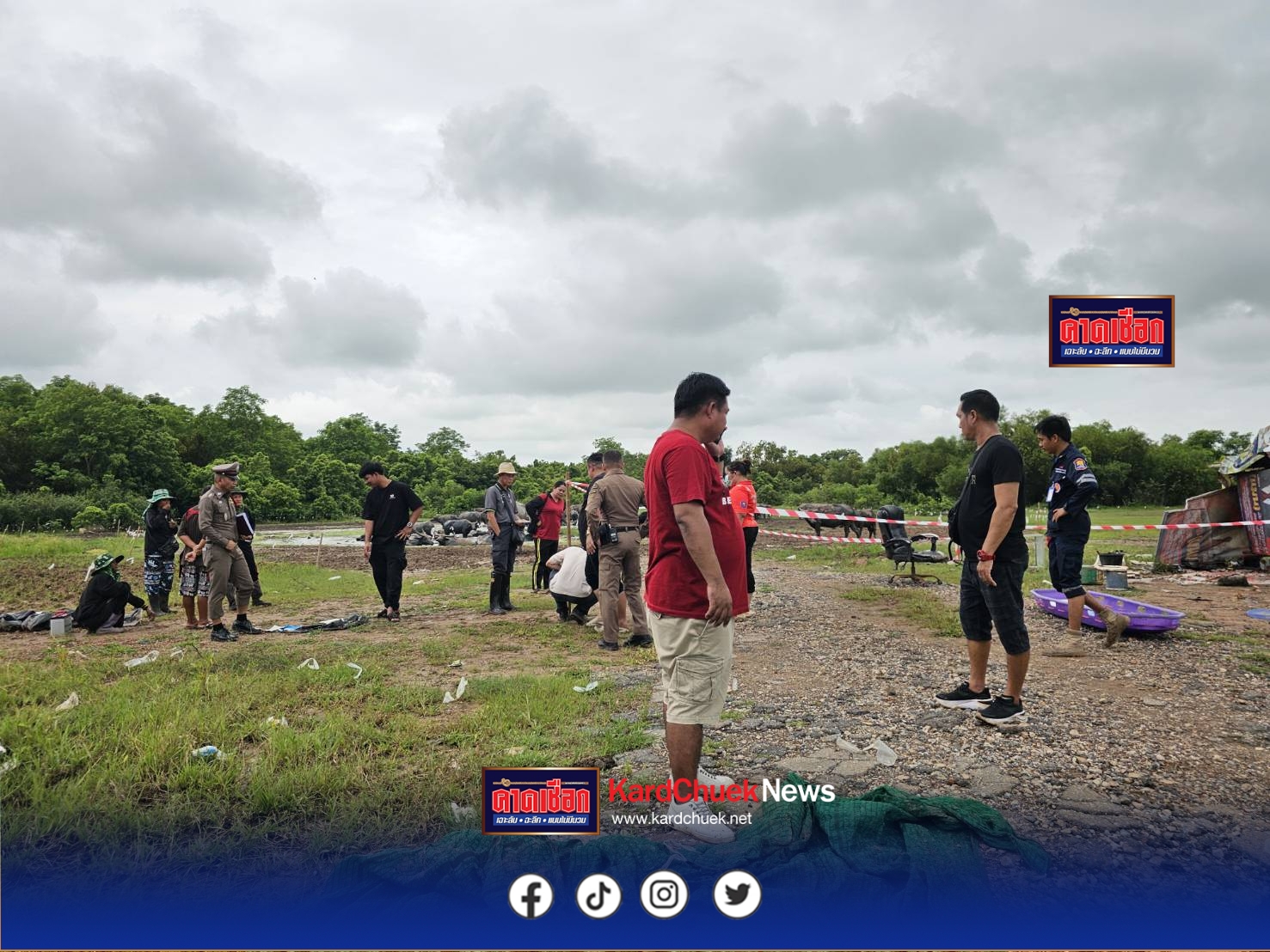 เลยจากใต้สะพานข้ามทาง รถไฟถนนสายสุวินทวงศ์ (ปราจีนบุรี – ศูนย์ราชการใหม่) หรือถนนสาย 319 แยกไปฝั่งซ้ายมือเป็นทุ่งเลี้ยงควายไกลกว่า 500 เมตรเศษ เป็นเพิงพักหลังคามุงผ้าพลาสติกปลูกติดพื้น 2 หลังเลี้ยงควายรวมเป็นฝูงจำนวนมากกว่า 100 ตัว ที่เพิงพักหลังแรกติดคอกควายพบศพผู้เสียชีวิต สภาพศพนอนหงายหน้าทับมุ้งที่ไม่ทันกางนอนอยู่บนแคร่ไม่ไผ่ สูงจากพื้นราว 1 เมตร สวมเสื้อสีน้ำเงินแขนสั้นกางเกงขายาวสีครีมใส่รองเท้าบูท ถูกแทงด้วยอาวุธมีด 1 แผลหน้าท้องฝั่งซ้ายจนไหลไหลออกมากองด้านนอกทราบชื่อต่อมาคือนาย สมพร พรมมาอายุ 62 ปี เลขที่ 27/1 หมู่ 5 ต.บ้านพระ อำเภอเมืองปราจีนบุรี จังหวัดปราจีนบุรี เสียชีวิตประมาณ 10 ชม. ด้านหน้าเพิงพักพบขวดเหล้าขาวตกอยู่ 1ขวด ส่วนคนร้ายผู้ลงมือก่อเหตุทราบชื่อคือนายสุกีย์ จันทร์มา อายุ 57 ปี บ้านเลขที่ 9 หมู่ 4 ตำบลไม้เค็ด อำเภอเมืองปราจีนบุรี จังหวัดปราจีนบุรีหลังก่อเหตุได้เดินเท้าหลบหนีมุ่งหน้าไปทางสถานีประมง