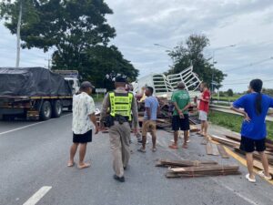 ตำรวจทางหลวงยึดรถบรรทุกไม้เก่าซุกยาบ้ากว่า 5 ล้านเม็ดหลังเสียหลักพลิกคว่ำ ลังยาบ้ากระจายเต็มถนน