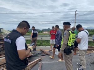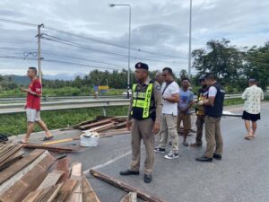 เบื้องต้นพบยาเสพติด(ยาบ้า) อยู่ในลังโฟม ซุกซ่อนมากับไม้ซึ่งรถคันดังกล่าวบรรทุกมา ตกกระจายอยู่ในบริเวณที่เกิดเหตุ ไม่พบคนขับแสดงตัวหรืออยู่ในบริเวณดังกล่าว คาดว่าหลบหนีไปหลังเกิดเหตุ สันนิฐานเกิดอุบัติเหตุเนื่องจากคนขับหลับใน