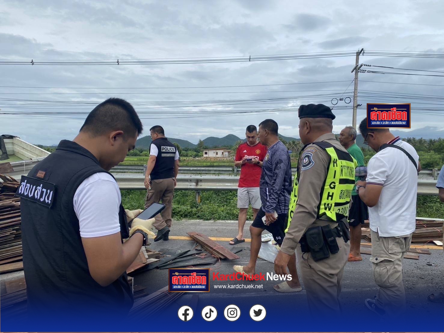 สืบเนื่องจากเจ้าหน้าที่ตำรวจทางหลวงประจวบคีรีขันธ์ ได้รับแจ้งจากศูนย์วิทยุ ว่ามีรถบรรทุกประสบเสียหลักพลิกคว่ำ เกิดอุบัติเหตุด้วยตนเอง บริเวณ ขาล่องใต้ ถ.เพชรเกษม ทล.4 ต.สามกระทาย อ.กุยบุรี จ.ประจวบคีรีขันธ์ เจ้าหน้าที่ตำรวจทางหลวง หน่วยบริการฯ กุยบุรี จึงได้เดินทางไปตรวจสอบ