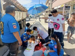 เขตหัวยขวาง กรุงเทพฯ สวมเสื้อแขนยาวสีดำและกางเกงขายาวสีดำ ทางเจ้าหน้าที่กู้ภัยพรานพิทักษ์ได้ช่วยนำลงมาด้านล้างพร้อมช้วยทำซีพีอา และประสานรถโรงพยาบาลสามพรานเข้าช่วยเหลือ จากการทำซีพีอา ไม่เป็นผลทำให้นายคำม่วน เสียชีวิตในที่เกิดเหตุ จากการสอบถามนายสมพงษ์ ยอดสีดา คนขับรถบรรทุกปั่นจั่น อายุ 37 ปี บอกว่าไปเก็บปั่นจั่นตอกเสาเข็ม หลังโรงเรียนนายร้อยตำรวจสามพรานจะย้ายไปไชร์งานที่ใหม่ ส่วนนายคำม่วน ไม่นั่งด้านหน้ามานอนอยู่ที่ท้ายรถข้างปั่นจั่นคาดว่าช่วงรถวิ่งตามท้องถนนทำให้ลูกตุ้มไหลมาทระทบศรีษะ ทำให้เสียชีวิต จากนั้นได้สอบถามนายสมศักดิ์ พลเมืองดีขับรถมอไซร์ตามหลังรถบรรทุกปั่นจั่นมาบอกว่าเห็นเหล็กปั่นจั่นเอียงมาทางซ้ายเกรงว่าจะหล่นบริษัทเขาเอาไปเก็บขึ้นตรงนี้เขาต่อเขื่อนอยู่ตรงนี้เสร็จแล้วต่อเข็มเสร็จแล้วเอาไปเก็บแล้วก็ขนของขึ้นรถมาแล้วน้องนั่งหลังมาออกจากซอยตรงไฟแดงตรงนั้นมาน้องเขาไม่นั่งหน้าเขาเรียกนั่งไม่นั่งน้องคนนั่งหลังเป็นชาวลาวพอช่วงจังหวะเบรกใช่ไหมตุ้มอะที่ตอกเสาเข็มอะมัน เลื่อนลงมามันหนักโดนคนหมดสติไปและเสียชีวิตในเวลาต่อมา ทางเจ้าหน้าที่ตำรวจได้ให้อาสามูลนิธิกู้ภัยพรานพิทักษ์นำร่างผู้เสียชีวิตส่งผ่าชันสูตร รพ.สามพรานเพื่อหาสาเหตุเสียชีวิตที่แท้จริงต่อไป พร้อมประสานนายจ้างญาติผู้เสียชีวิตและผู้ขับขี่รถยนต์คันดังกล่าวมาติดต่อที่สภา.สามพรานเพื่อดำเนินการตามขั้นตอนต่อไป https://drive.google.com/file/d/1rCslAtx9Qm8fNOChEYLVwhXNhbVvVfPB/view?usp=drivesdk
